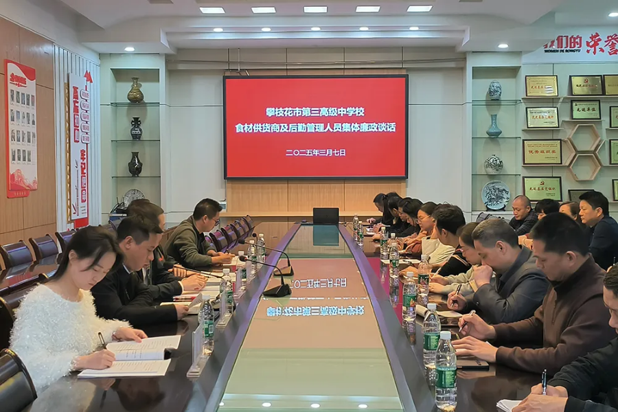 会上,伍学文副校长组织大家集中学习学校供货的各种要求和规定,供货商要确保供货的食品安全。谢明城科长强调了食堂工作对于食品安全和师生健康的重要性,指出廉洁自律是保障食堂服务质量的基础。食堂管理人员要坚守职业道德,杜绝以权谋私、收受回扣等违规行为,严格执行采购流程,确保食材采购的公正透明。同时,对供货商提出了严格遵守商业道德、诚信经营的要求,不得通过不正当手段谋取合作机会,共同维护良好的合作关系。代座城校长要求供货商严格履行合同要求,保质保量供货;严格落实进货查验制度;严守廉洁纪律底线。校纪检监察综合科将定期对食堂运营情况进行检查,确保廉政要求落实到位,定期开展廉政教育和食品安全培训,提升相关人员廉洁意识和专业能力。