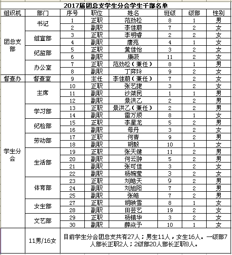 高2017届学生干部名单