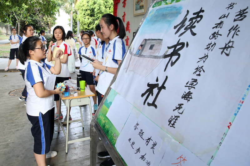 读书社、文学社、广播站、话剧社精心策划了知识竞赛、有奖竞猜等游园活动,并准备了小笔筒、笔、书签、糖果等小礼品,受到同学们的热烈欢迎。