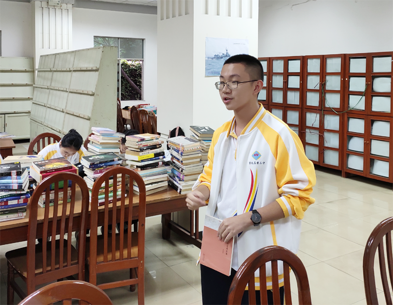 读书社副社长、高2022届6班的何英同学由分享了日本作家夏目漱石的长篇小说《我是猫》,分析了军人、精英、教师、车夫等各自的猫所反映的社会阶层等。