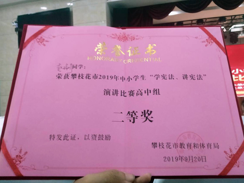 我校高2022届4班的赵瑞琪、普京两名同学代表学校分别参加了演讲比赛与知识竞赛。知法懂法,从我做起,赵瑞琪同学以《宪法为我而立》为演讲题目,结合实事案例,充分展示了我市三中学子的非凡风采;最终以第二名的喜人成绩荣获二等奖!竞法爱法,你我同责,普京同学以丰富的法律知识和沉着的参赛态度参与知识竞赛,充分体现了三中学子的渊博学识。