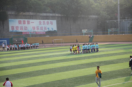 阳光一寸寸地涨,云翳斑驳的窗台上几只麻雀跌过,留下深深浅浅的印记。时间一分一秒地流逝,内心的迫切感愈来愈强烈。终于等到下课铃声的敲响,同学们踏上征途,来到运动场地,熙攘着黄校服和红校服,只听裁判哨音刚落,对面高个子便表现出的气概,向我方踢去足球。我方红球袜成员顺势接住,在众人的争抢中,成功杀出一条路来。“不错”我打心眼里为红球袜成员喝彩。“进,进……唉❗”15班同学有力地呼喊着。“唉,不愧为专业球员!”还不等15班同学叹息完,对面7班主力军高个子,便以迅雷之势成功接下足球,一个转身。“啧”顷刻间,足球横穿全场,直奔我方球网。我方守门员赶紧调整姿势,准备拦下这颗失控的球。只见他迅速上跳,伸出手,往上扑……又是个震撼人心的时刻,最终比赛的胜利花落谁家呢?是扬言进两位数球的7班,还是不甘示弱的15班呢?“咚”球顺利进网。此刻,全场响起了惊雷般的掌声和呼喊声。高个子得意地举手示意。最终,7班以1:0险胜15班!比赛结束后,双方握手致意,互相称赞道:“踢得不错。”