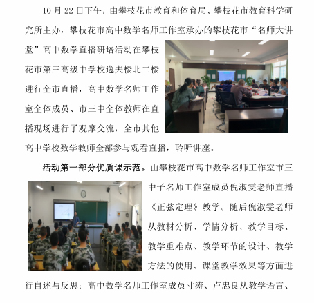 名师工作室直播攀枝花市名师大讲堂活动