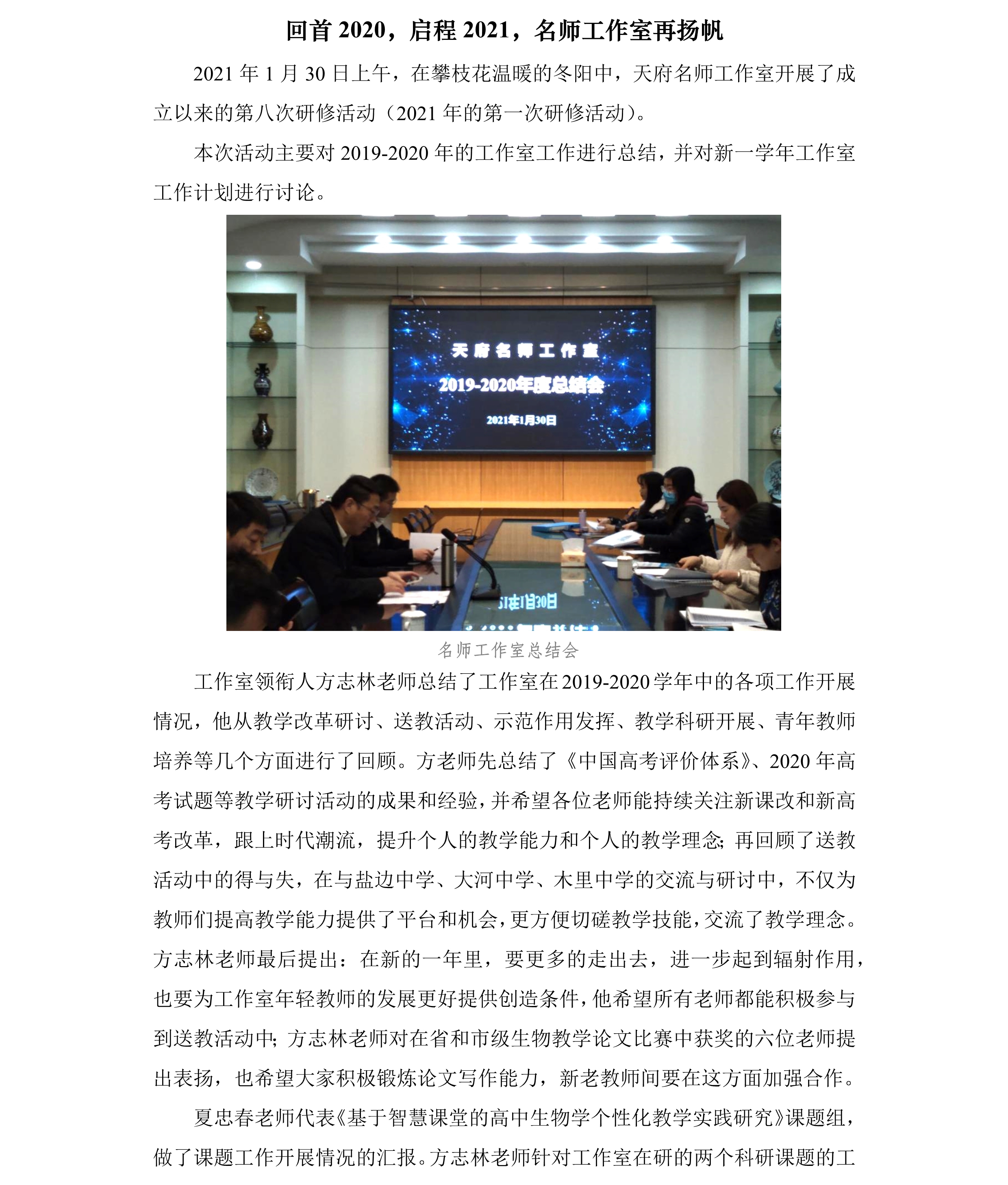 回首2020,启程2021,名师工作室再扬帆