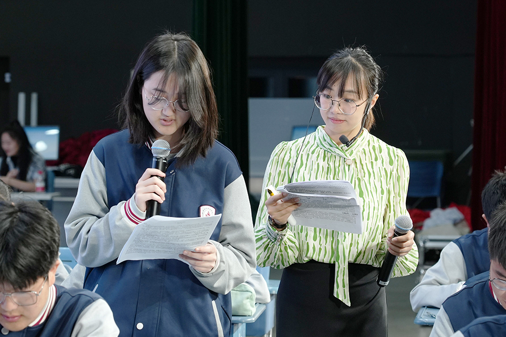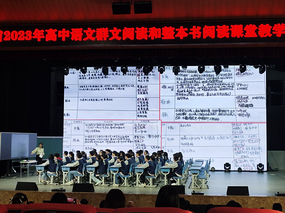 “众人拾柴火焰高”,除了学校的培养和信任外,青年教师的成长与成就一定离不开学科组集体的力量与智慧。接到攀枝花市教体局的初赛通知后,我便在四川省语文特级教师同时也是市三中语文组大组长苏细华老师及高二语文组组长李敏老师的指导下开始优化课件,练习无生课堂,最终在市级初赛中突围而出。之后便是半个月的省赛备战,课堂实练,反复磨课。市教科所高度重视这次教学比赛,市高中语文教研员赵岚昕老师跟苏细华老师、李敏老师、龙咏梅老师这三位语文教研组长多次来听课,并集体教研给出指导意见,纠正细节错误,如此反复,教诲谆谆,让我的教学设计逐渐从“思路还不错”到“思路清晰,新颖有创意”;字斟句酌,精心考究每一处的起承转合,让我的课堂语言从一开始的“重点不明,不扣议题”到“扣题紧,有深度,能共鸣,有思辨”。但学科团队的鼓励与帮助还远不止于此,因为教学设计经历了几轮的推翻重来,又因临近半期考试,所以最终定稿的教学设计没有充足的时间进行课堂打磨,正在我发愁之际,高一高二语文组的前辈们纷纷伸出援手,借班借课,一天一节不够那便一天两节;没有前置阅读时间,那便挪出阅读课和作业时间让我指导学生预习……可以说,是市三中语文学科团队的协心同力成就了我的这节课的成功。