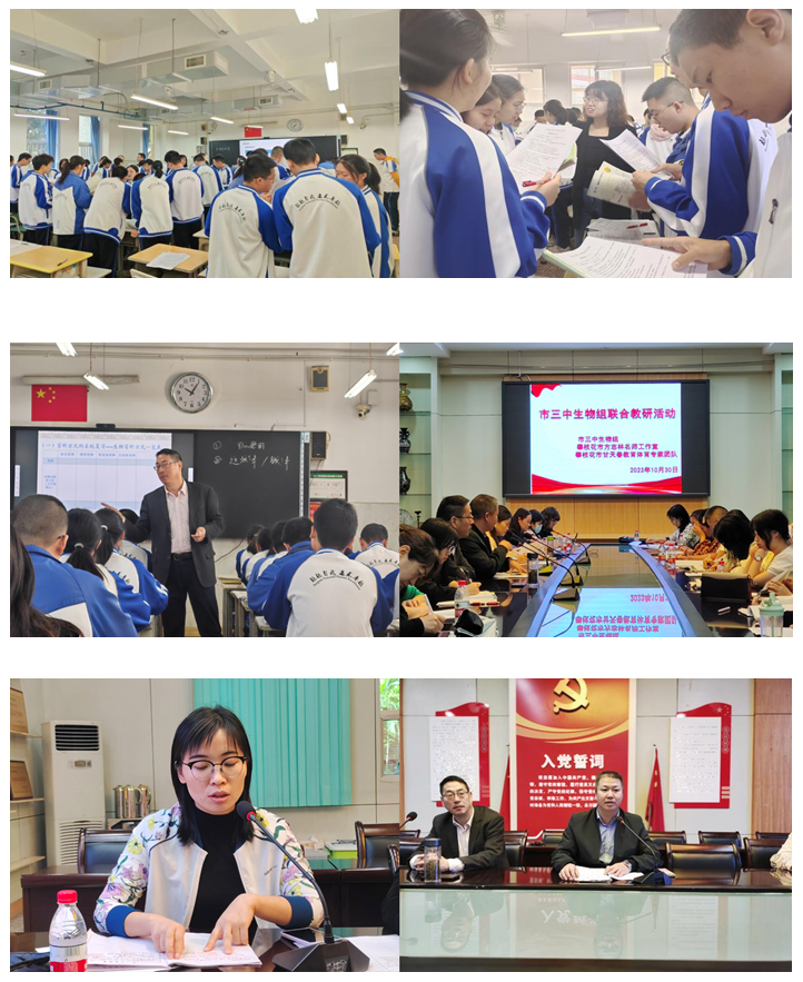 为进一步提高教师的专业素养和教学能力,夯实教师驾驭课堂教学的基本功,提升高三复习备考的针对性,2023年10月30日上午,甘天春教育体育专家团队联合市三中生物组、攀枝花市方志林名师工作室开展联合教研活动。活动由市三中甘天春老师主持,参与人员有:两大工作室成员、市三中全体生物教师、大河中学高三教师以及市十五中和市七中的部分教师共29人。本次教研活动主要以听课、评课、讲座的形式开展,大家共同研讨高三生物的讲评课、一轮专题复习课以及2024年高考备考策略。