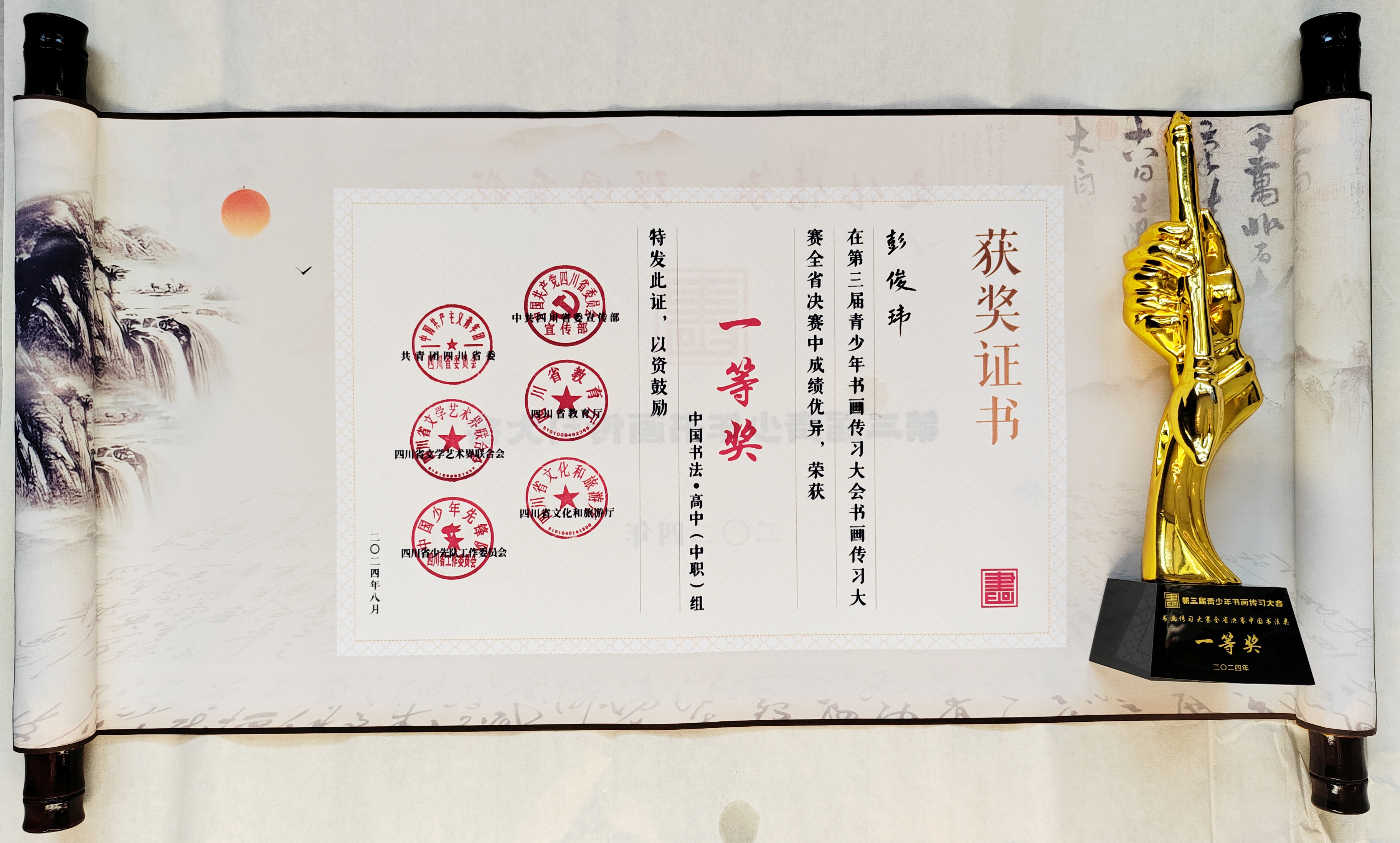 近期,四川省第三届青少年书画传习大会在绵阳江油举行。四川省21个市(州)选拔赛及网络大赛中脱颖而出、成功晋级全省决赛的600余名优秀选手齐聚于此,展开“巅峰对决”。通过创作比拼、素养比拼,在大会专家委员会和监审专家全程监督下,各类别专家按照比赛规则公平公正评选出一、二、三等奖作品。