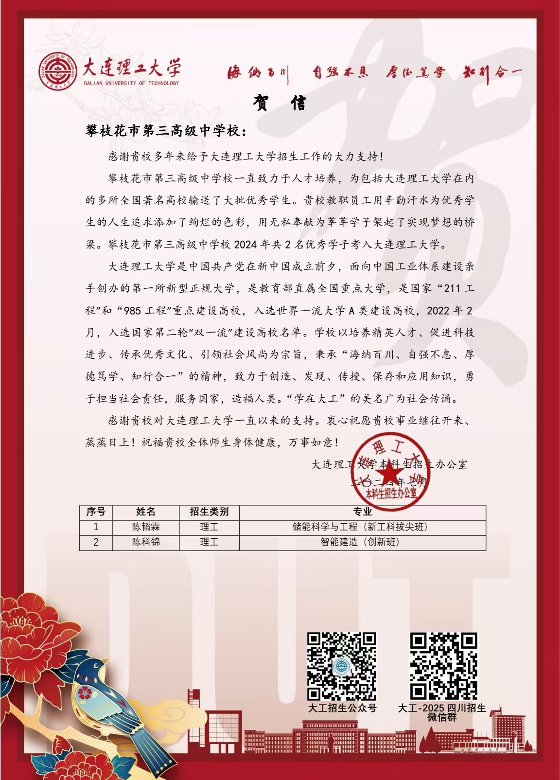 大连理工大学发来贺信!