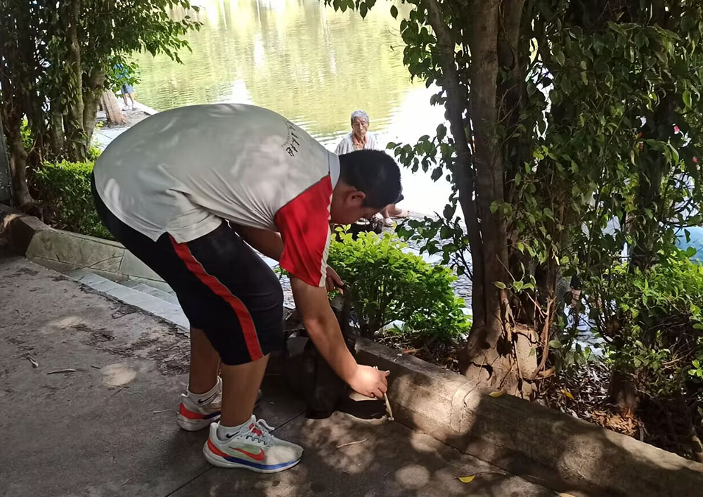 2024年9月7日下午,红黄蓝志愿者联盟的“红星火志愿者队”头顶烈日踏热浪,手持清洁工具和垃圾分类宣传手册,一同前往攀枝花竹湖园公园,拾捡烟头纸屑、清除绿化带杂草、清理“牛皮癣”小广告,向市民科普垃圾分类小知识。