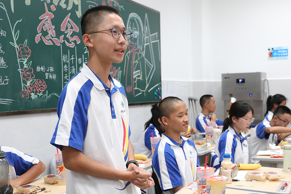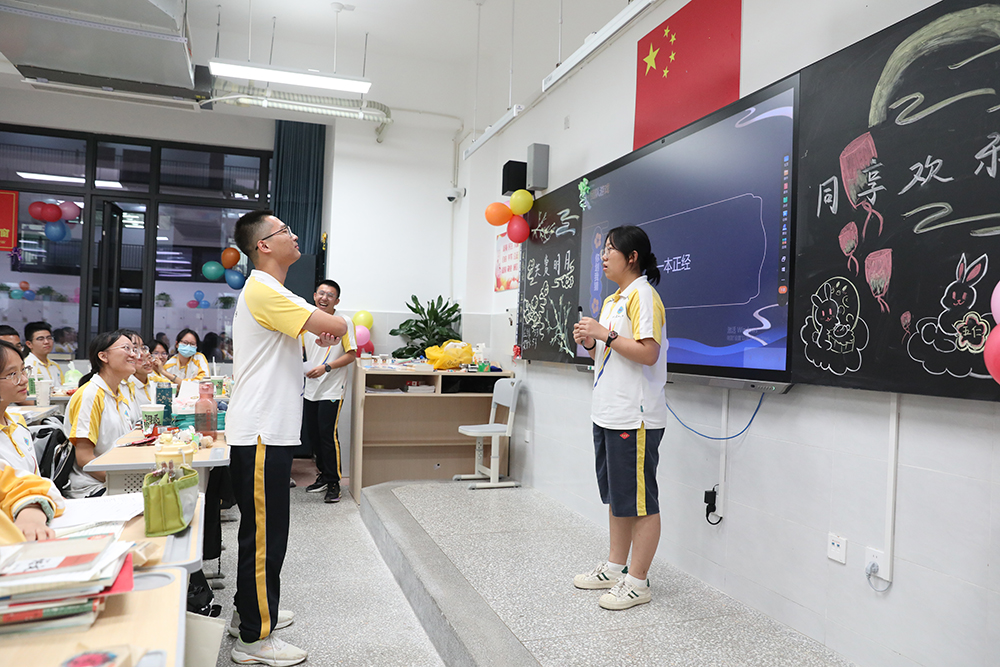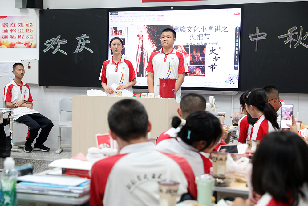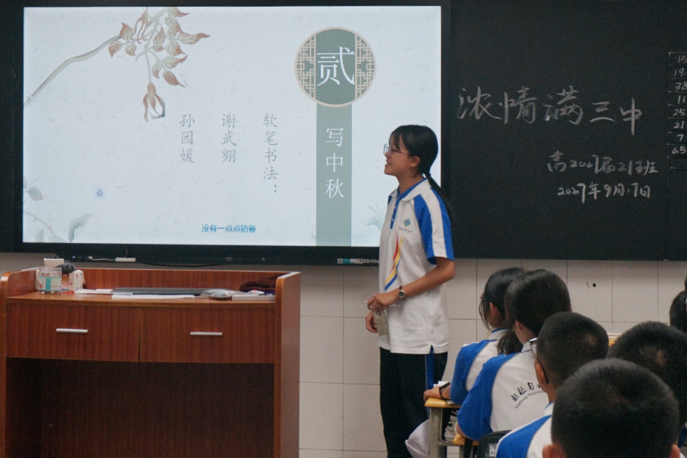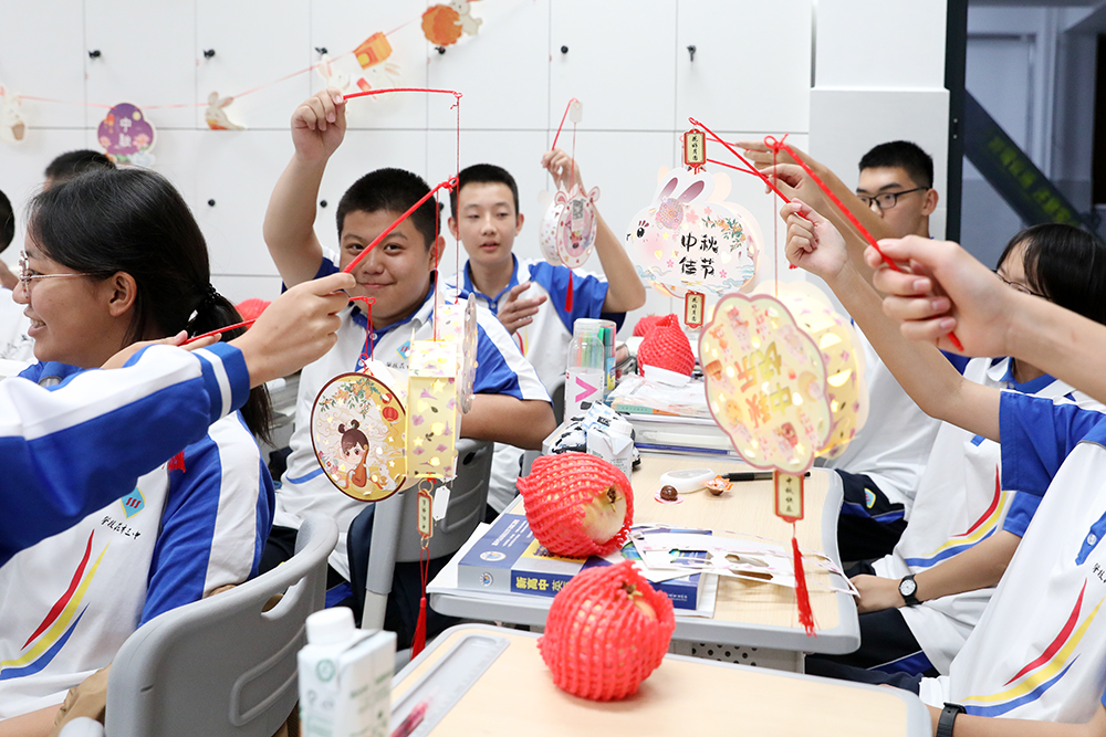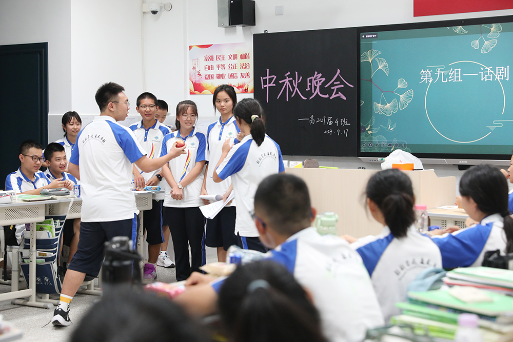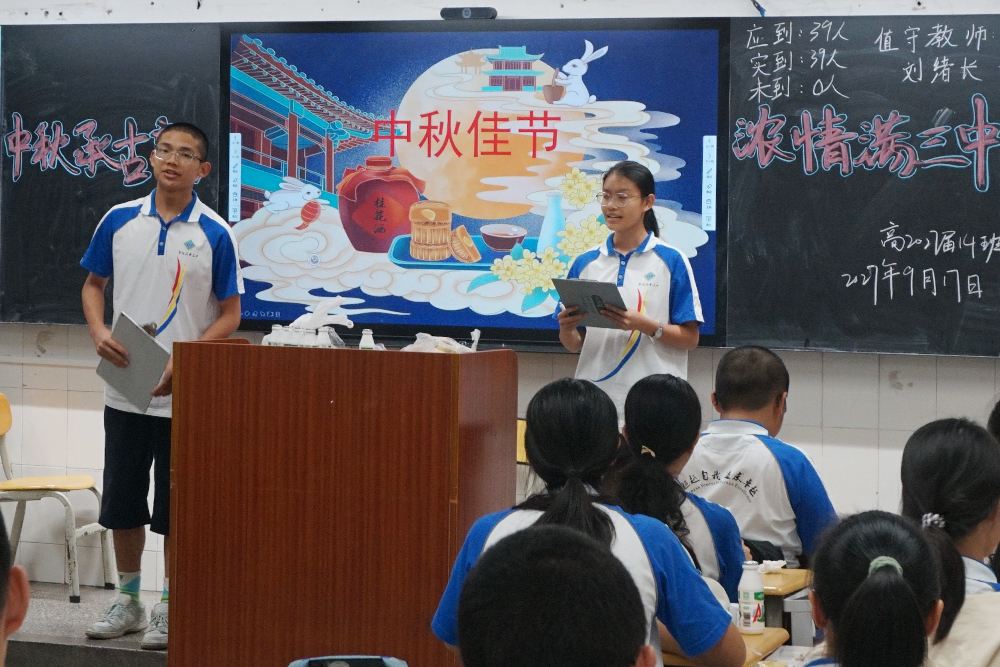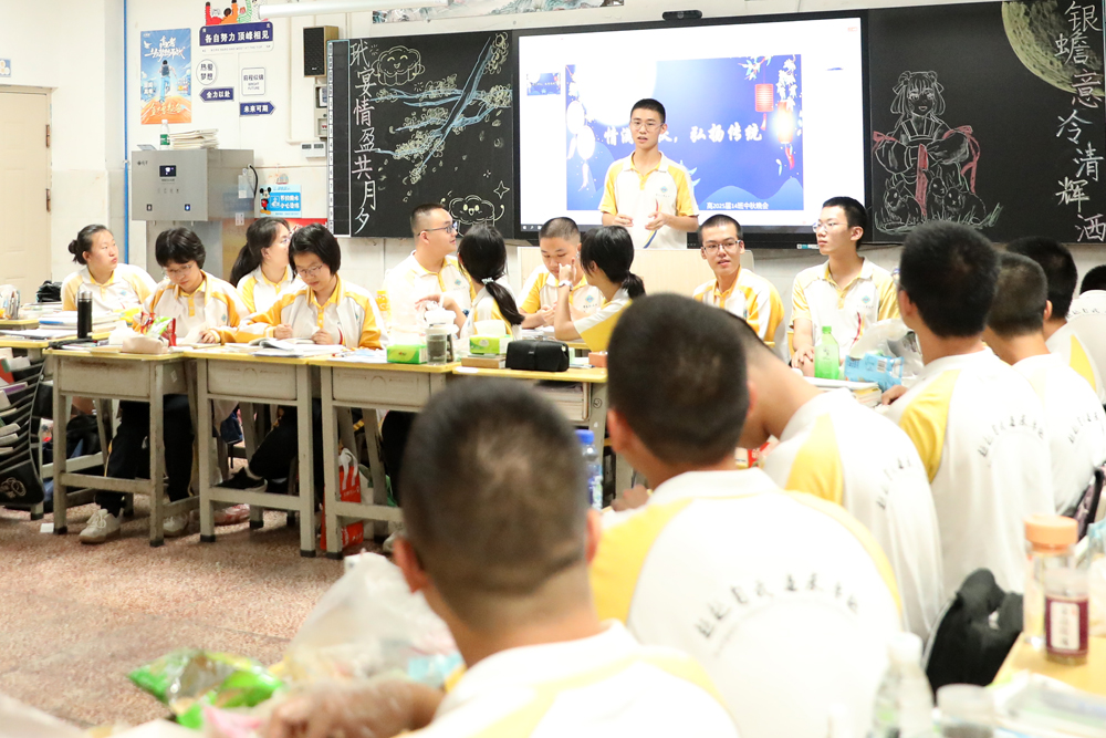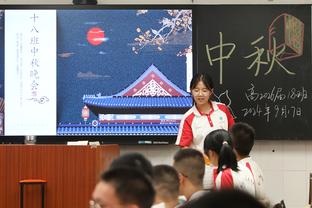 班会由各班学生自主策划,每一个细节都透露着他们的巧思和创意。教室的每一个角落,都弥漫着中国传统文化的韵味。同学们通过诗词朗诵、故事讲述等方式,将中秋节的起源、习俗和寓意娓娓道来,带领大家穿越时空,感受古人的智慧和情感,体悟中华优秀传统文化的家国情怀。