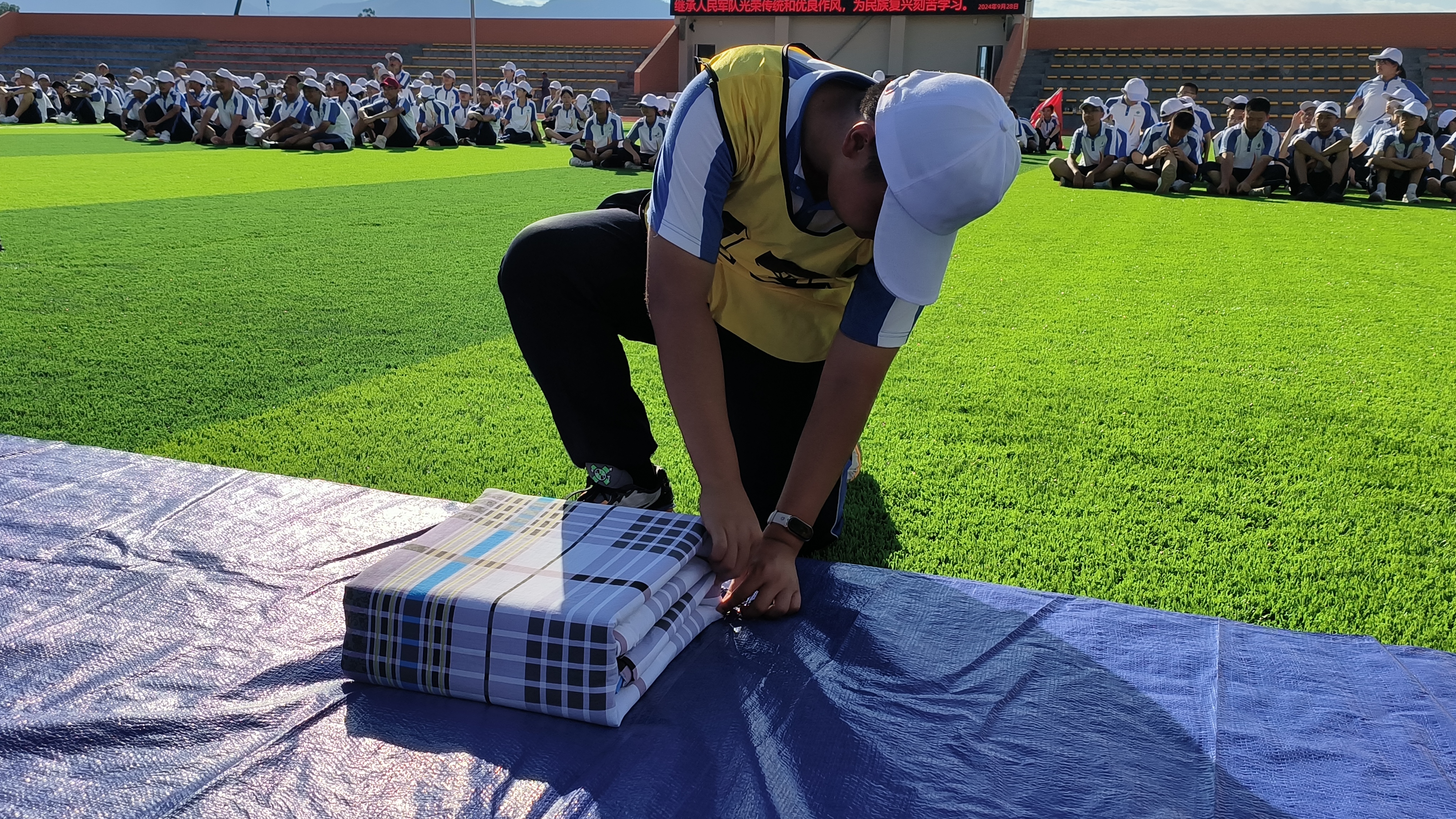 各班参赛的同学都怀着紧张而兴奋的心情,不甘示弱地望着身旁的对手,可手上的动作却娴熟而规整,就连一棱一角的整理都有条不紊、一丝不苟。这看似日常的内务整理却处处诠释着严谨,更彰显着统一,而学员之间的较量与比拼却赋予了它青春的活力,尽显同伴的温情与热情:一声声鼓励,一句句加油,一阵阵欢呼,……,就是一道道靓丽的风景。