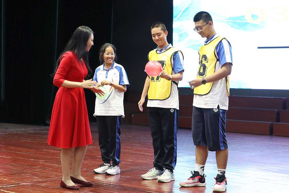 阴医生以同学们真实的压力来源作为切入点,通过现场小游戏: “吹气球”,让大家切实看见压力、了解压力,明白压力应当适当,才能激发自己最高的学习效率。