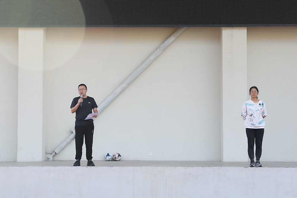 仪式开始前,全体学生齐聚行健体育场,个个精神抖擞,眼中满是对驰骋绿茵场的期待与热情。首先,年级主任郑伟致开幕词。他强调,比赛中要始终秉持“友谊第一、比赛第二”的竞技态度,尊重对手与裁判,弘扬团结、坚持、进取、拼搏的体育精神,享受比赛过程,体会运动之乐。同时,郑伟主任向全体参赛运动员着重强调:“安全是比赛顺利进行的首要前提,严禁出现威胁自身或他人安全的行为!”开幕词的最后,他对各班表达了鼓励与支持,并预祝比赛顺利开赛。同学们欢呼声响彻全场。