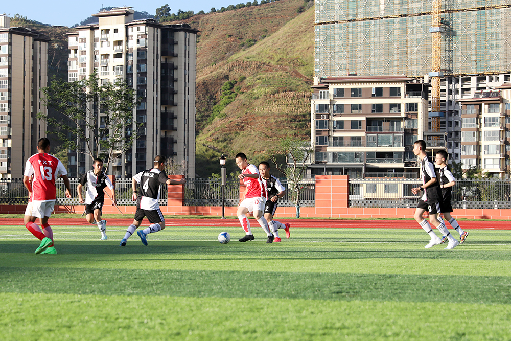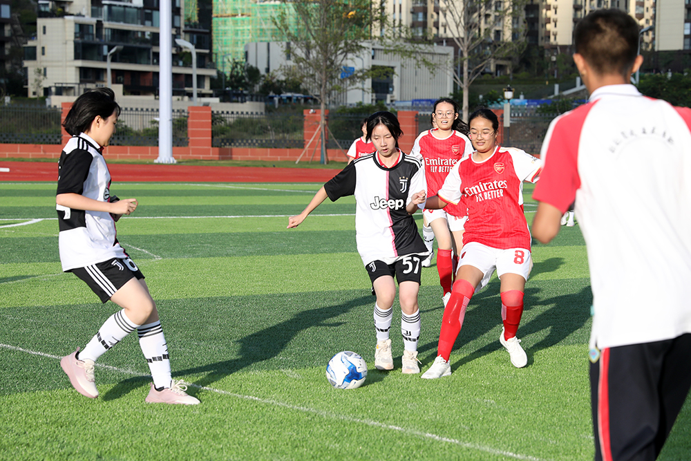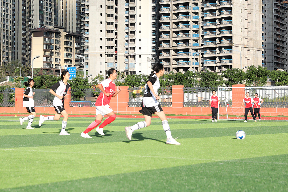 球一出,全场瞬间沸腾,运动员们如离弦之箭般飞奔而出,足球在运动员们的脚下灵动飞舞。欢呼声、呐喊声、喝彩声此起彼伏,响彻云霄。运动员们在赛场上奋勇拼搏,既针锋相对又配合默契,尽情挥洒汗水,尽显青春风采。