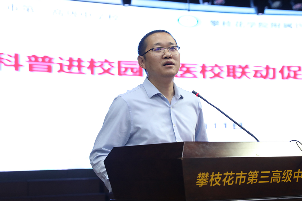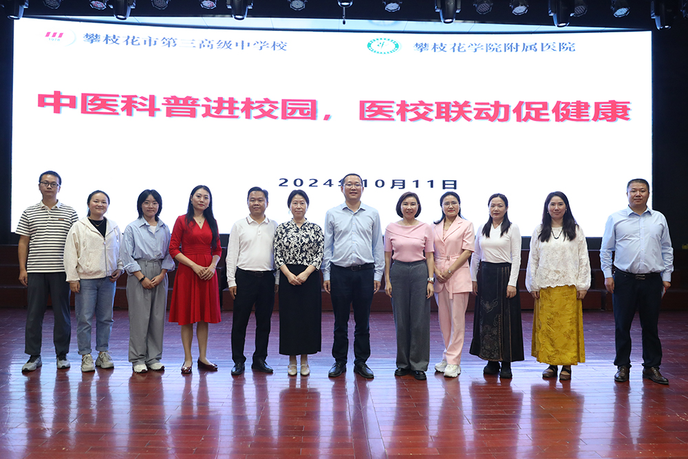 为传承和弘扬中医药文化,进一步提升师生中医药健康素养,攀枝花市第三中学校与攀枝花学院附属医院联合举办了“中医科普进校园,医校联动促健康”主题活动。活动在我校学园路校区图书馆三楼演播厅举行,攀枝花学院附属医院党委副书记张静,攀枝花学院附属医院副院长、大小单双平台健康副校长卿丽华,大小单双平台党委副书记、校长代座城,党委委员、副校长郭志洪,医院授课专家团队等领导及嘉宾出席活动。活动由德育科科长甘天春主持。