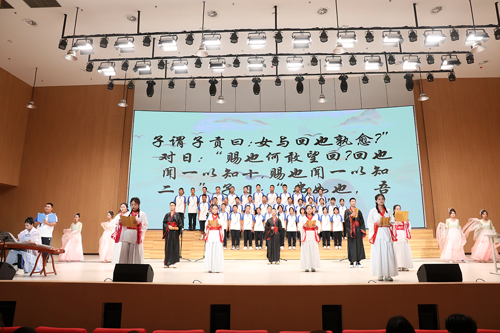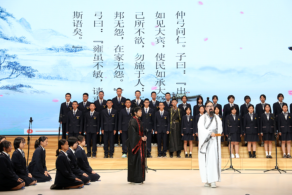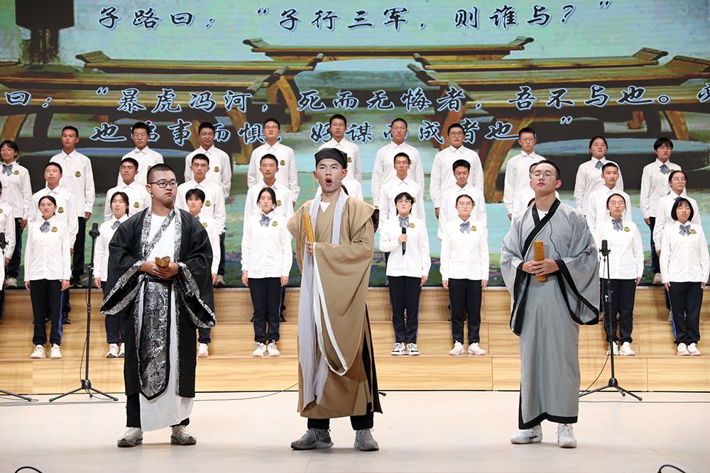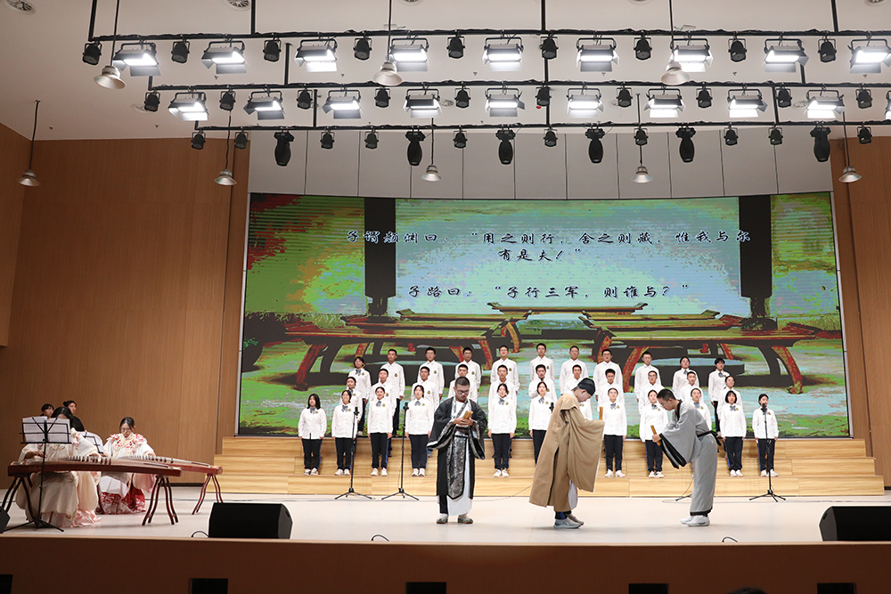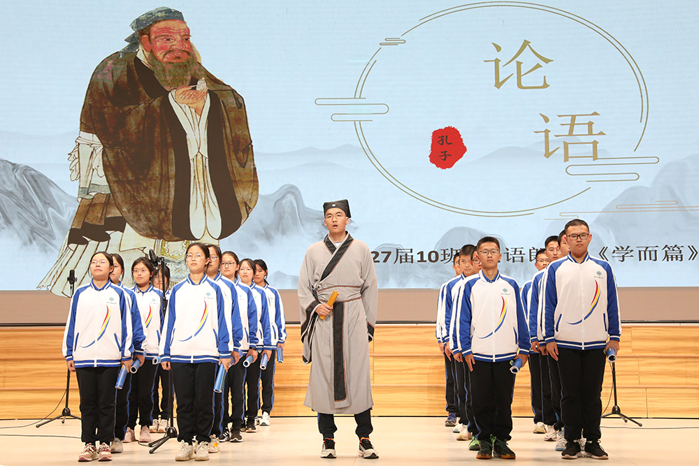 今夜,我们相聚于此,聆听先贤智慧;今夜,我们齐聚一堂,感受中华文明。从“天不生仲尼,万古如长夜”的感慨,到对“克己复礼为仁,一日克己复礼,天下归仁焉”的理解;从“为政以德”的谆谆教诲,到对“子罕言利与命与仁”的思考。同学们通过朗诵、歌舞、舞台剧等形式,为我们展现了《论语》的博大精深。同学们在诵读中,感受圣言之味,领悟人生真谛。