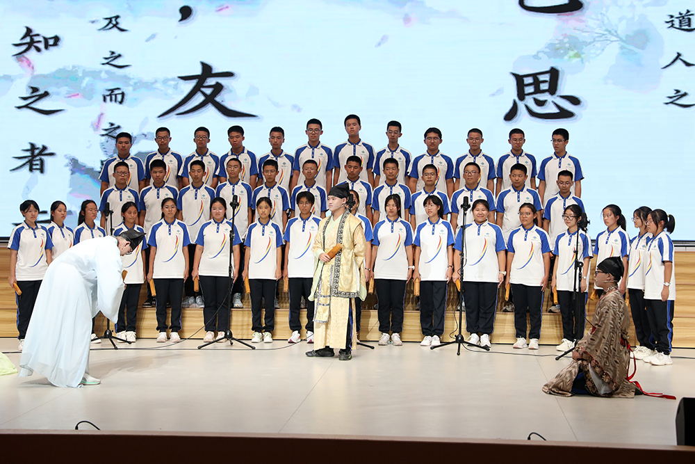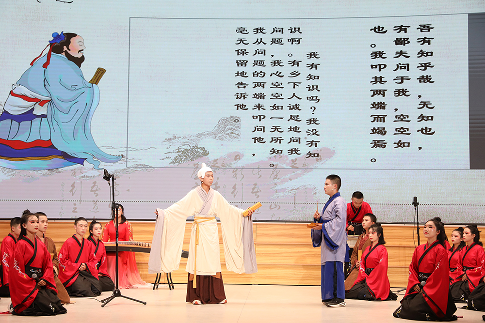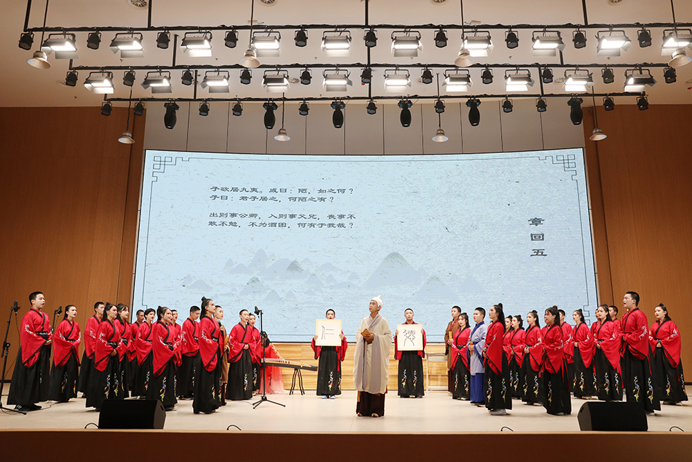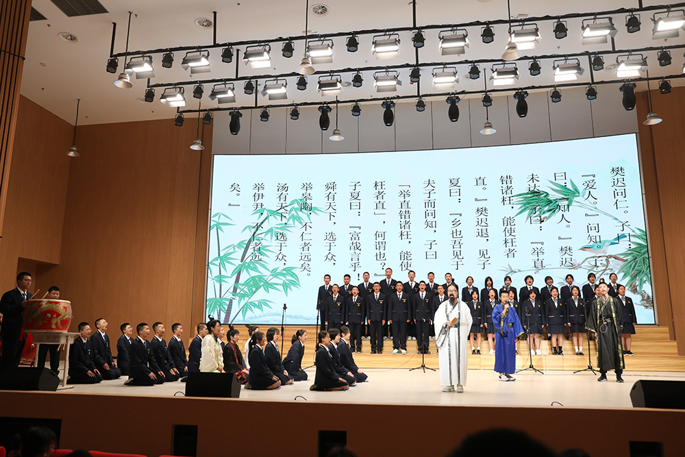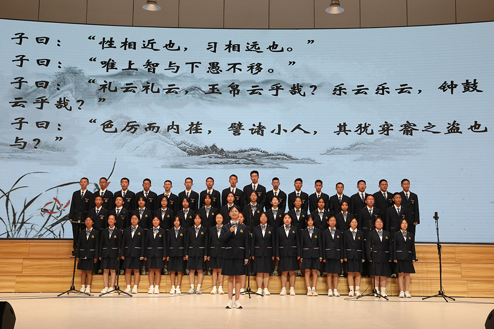 今夜,我们相聚于此,聆听先贤智慧;今夜,我们齐聚一堂,感受中华文明。从“天不生仲尼,万古如长夜”的感慨,到对“克己复礼为仁,一日克己复礼,天下归仁焉”的理解;从“为政以德”的谆谆教诲,到对“子罕言利与命与仁”的思考。同学们通过朗诵、歌舞、舞台剧等形式,为我们展现了《论语》的博大精深。同学们在诵读中,感受圣言之味,领悟人生真谛。