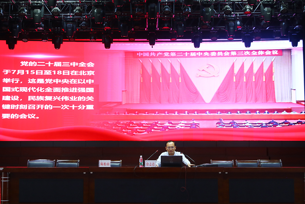 会上,徐志达教授紧扣党的二十届三中全会精神主题,围绕《中共中央关于进一步全面深化改革、推进中国式现代化的决定》的框架和基本内容,从“开辟中国式现代化前景”“标注时代的改革新蓝图”等方面阐释了全会的重要意义,分析了中国式现代化的发展历程、核心内涵和重大意义,深入解读了全会关于深化改革、促进发展、保障民生等方面的新部署、新要求,并对四川省委十二届六次全会精神的的四个重大意义、三大鲜明特色、三项丰硕成果等方面进行了解读,引导教职工深刻领会并认真落实教育、科技、人才一体推进的战略部署,坚持党的全面领导,认真落实立德树人根本任务,全面深化改革,提升办学质量,努力培养担当民族复兴大任的时代新人。