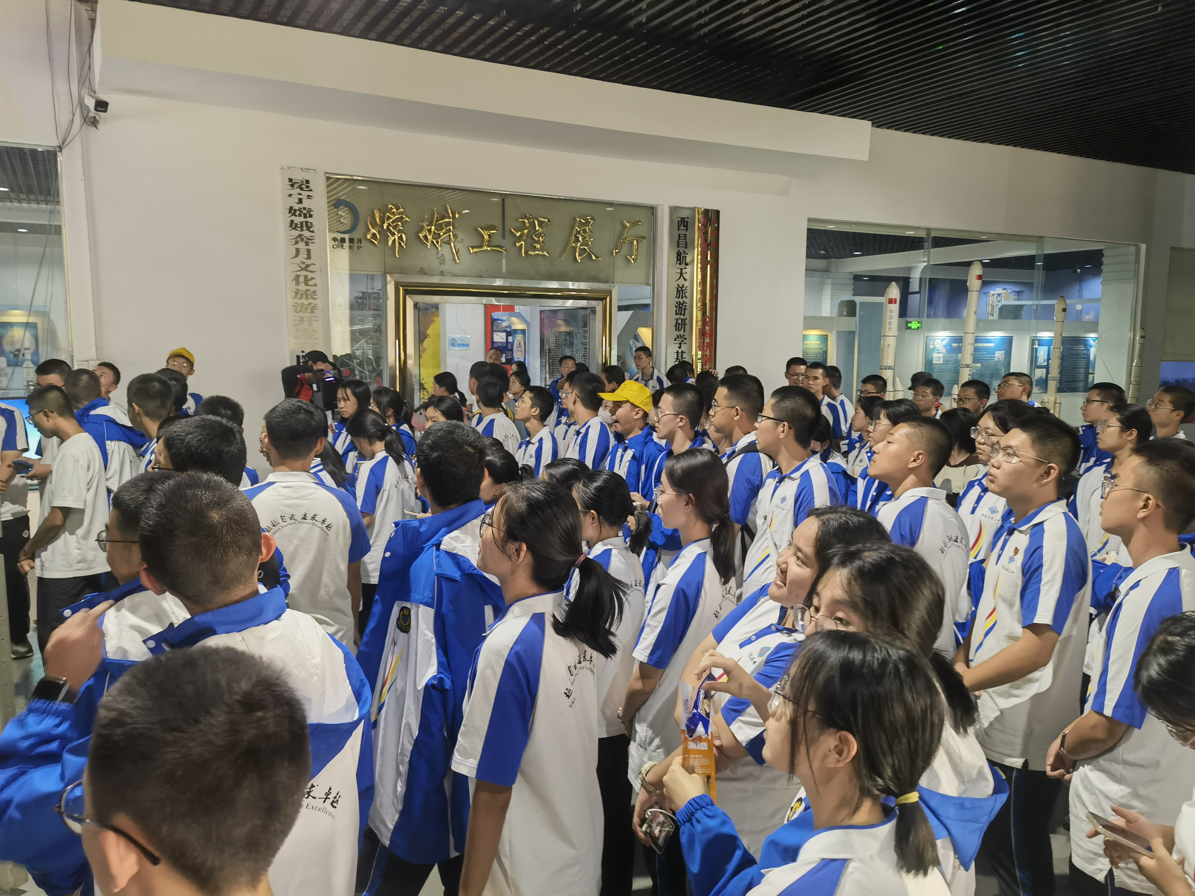 随后同学们前往了嫦娥工程展馆。在嫦娥工程展厅内,同学们可以观赏天宫一号1:1模型、嫦娥三号3:1模型、火箭整流罩航天文物、火箭发动机回收物以及大量航天发射图文资料。通过参观游览,同学们系统了解中国航天的发展历程和成就。一墙征程,满满的图文,航天文化展示墙详细记录了西昌卫星发射中心历次发射任务及其他重要时刻的辉煌瞬间,彰显中国航天领域蓬勃发展、不断进取的精神。