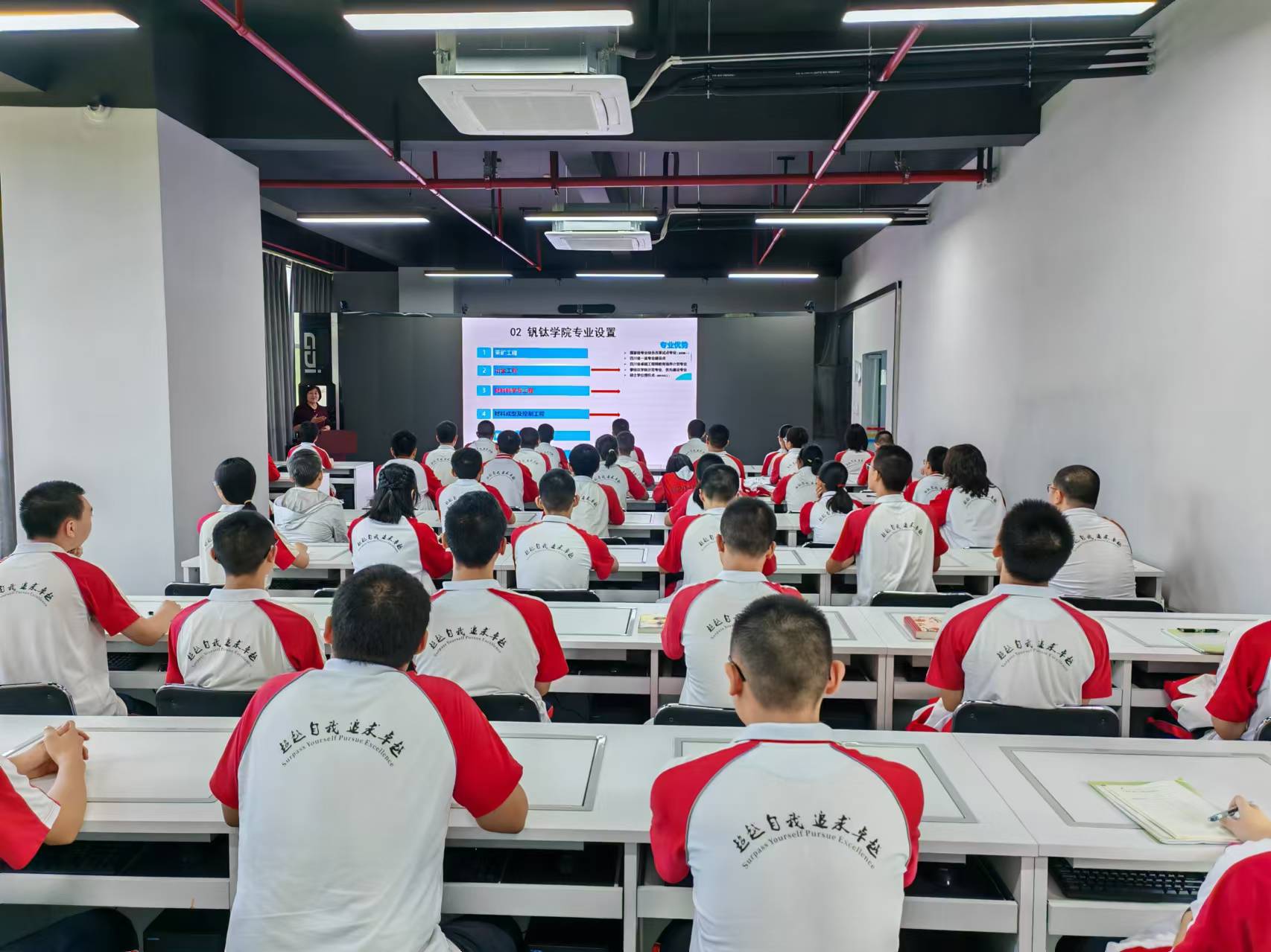 研之有道,学之有效。为进一步落实立德树人,提升学生的综合素养,培养学生的社会责任、创新精神和实践能力,强化内涵式教育发展,开拓学生视野,丰富学生生活,促进学生全面发展。2024年10月16日,市三中组织高2026届10班学生前往攀枝花学院钒钛学院开展“钛合金真空冷坩埚凝壳感应熔炼工艺虚拟仿真实验”研学实践活动。此次研学实践活动特邀请了攀枝花学院钒钛学院王振玲老师为同学们作“材料在国民经济中发展中的重要性及钛合金熔铸虚拟仿真实验介绍”的讲座。