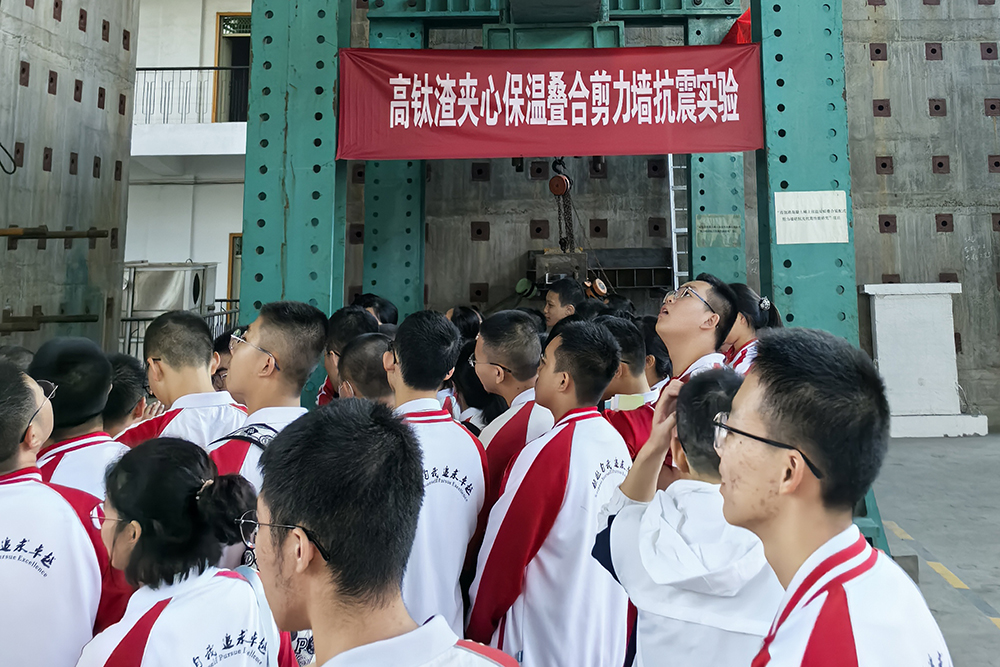 在实验基地中,学院教授以丰富的多媒体视频与具象化的建筑模型向同学们介绍了预制构件——这一建筑行业前沿发展方向。不同于传统一砖一瓦的建造形式,新型的预制构件是将不同构件以搭积木的形式进行拼接,最后通过混泥土浇筑而成,具有抗震性能好、生产效率高、批量化生产、建造时间短、应用前景广等一系列优势。
