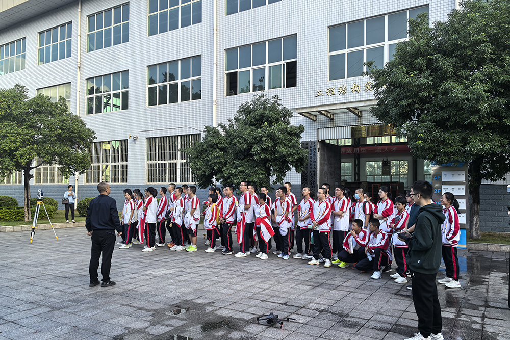 随后同学们移步户外观摩学习了无人机测绘、全站仪、RTK的操作实践过程,了解了北斗卫星在测绘方面发挥的重要作用,见证了中国科技的飞速发展和背后科研人员的艰辛付出。