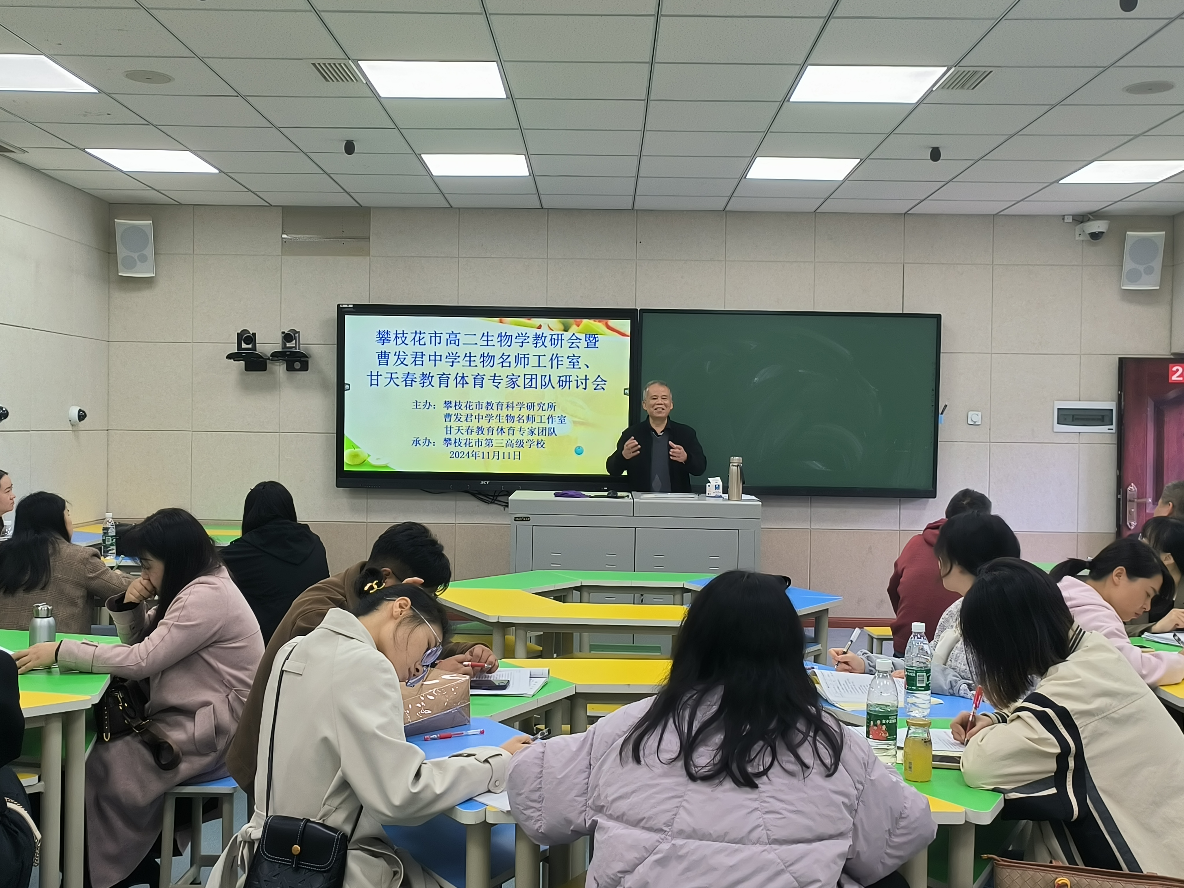 为了推进高中生物学科课堂教学改革,加强对新教材、新课标的理解,充分发挥名师引领作用,展示课堂教学改革成果,交流教育教学经验。11月11日上午,甘天春教育体育专家团队联合曹发君中学生物名师工作室开展集体研讨活动,甘天春教育体育专家团队成员、曹发君名师工作室高中段成员、全市高二生物教师、特邀专家邓爱平参加了此次活动。
