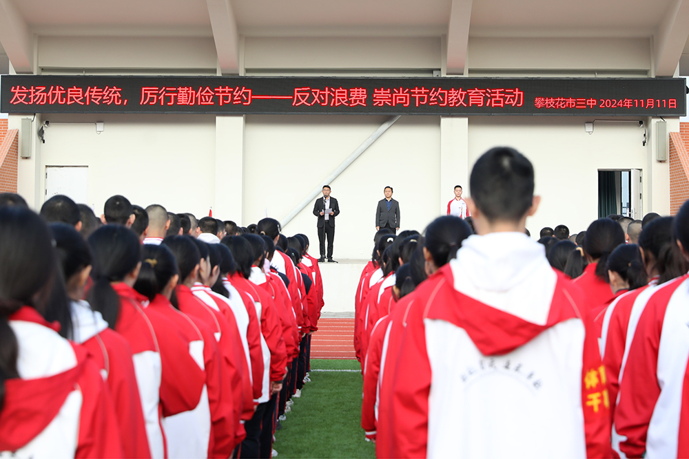 2026届1班张恒源同学和2026届7班游桂萍同学分别在钒钛高新校区和学园路校区作演讲,强调了勤俭节约是中华民族的传统美德,阐述了勤俭节约的深远意义;通过引用生动的案例和数据,强调了勤俭节约在个人成长、家庭幸福以及社会可持续发展中的重要作用,鼓励大家从日常小事做起,珍惜资源,避免浪费;呼吁同学们从点滴做起,共同营造勤俭节约的良好校园氛围。