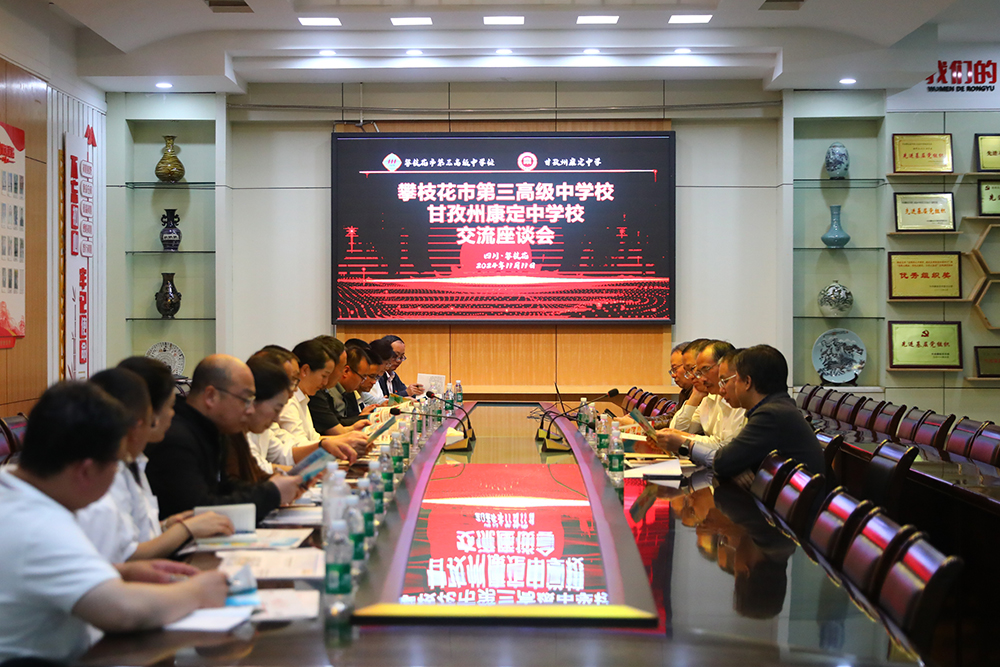会上,我校陈柏羽书记,代座城校长介绍了学校发展历史和发展思路,学校坚持以立德树人为根本任务,全面实施素质教育,在“五育”融合中积极推进教育教学改革,为攀枝花市建设共同富裕试验区、助推全市教育体育高质量发展贡献了三中智慧和力量。康定中学党委书记呷绒志玛介绍了学校的办学情况。党委副书记、校长何佳强在座谈会上交流了参观的感受,希望两校加强友谊。