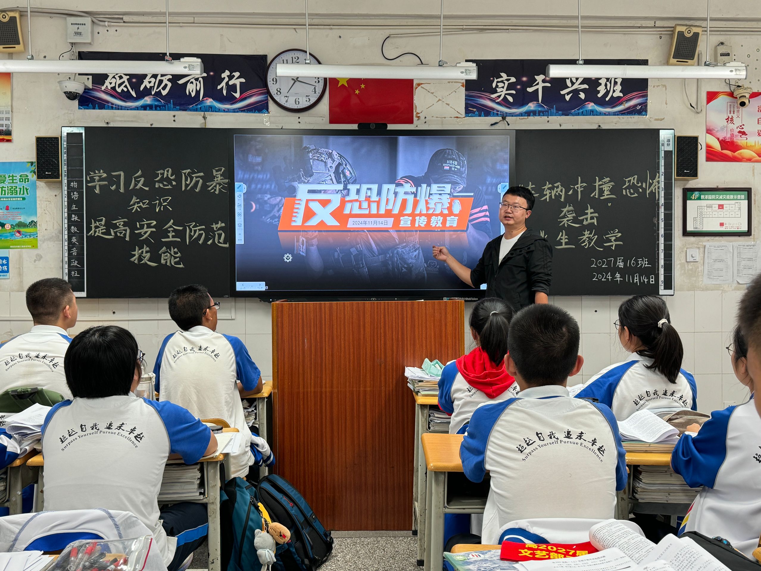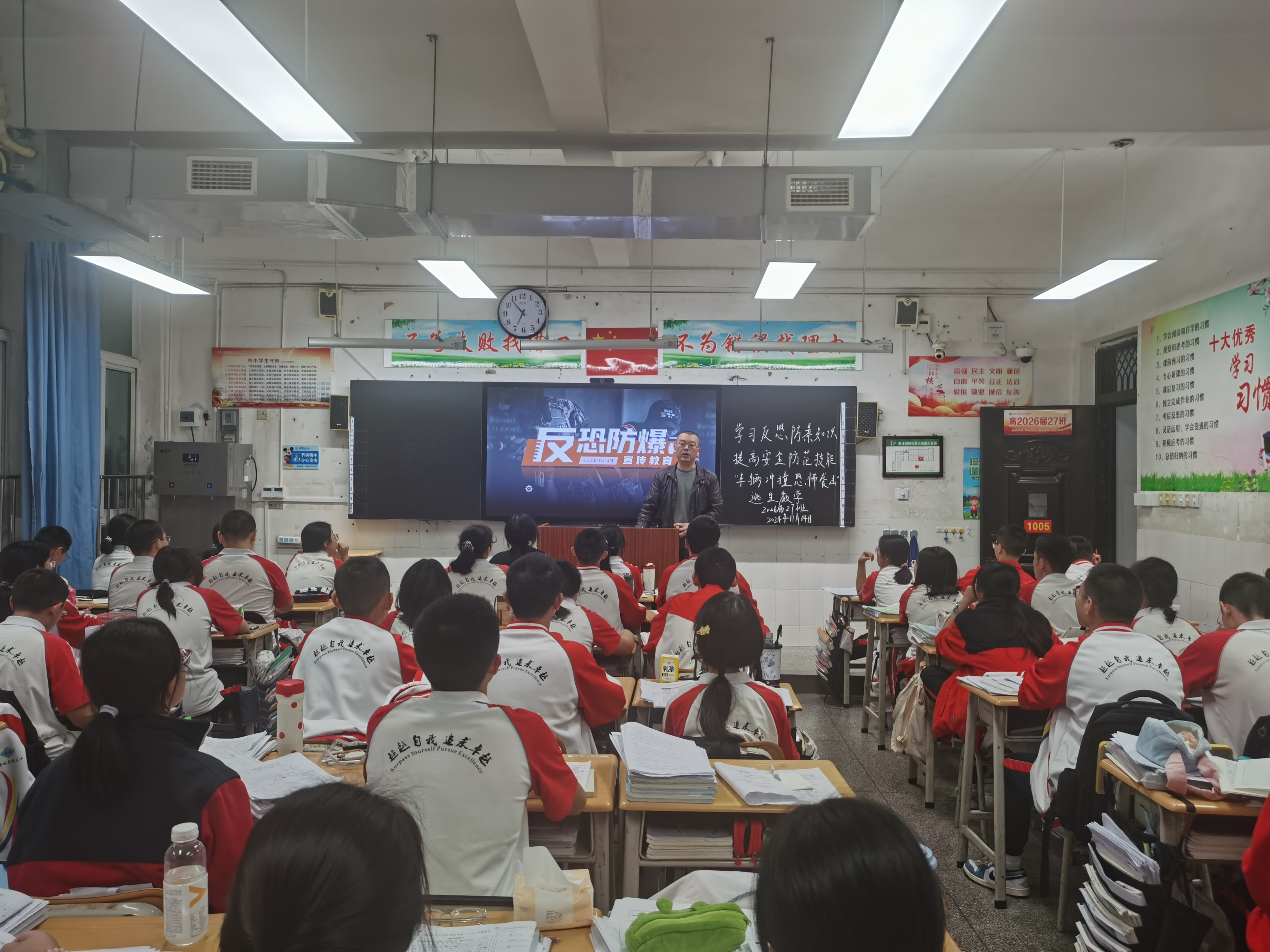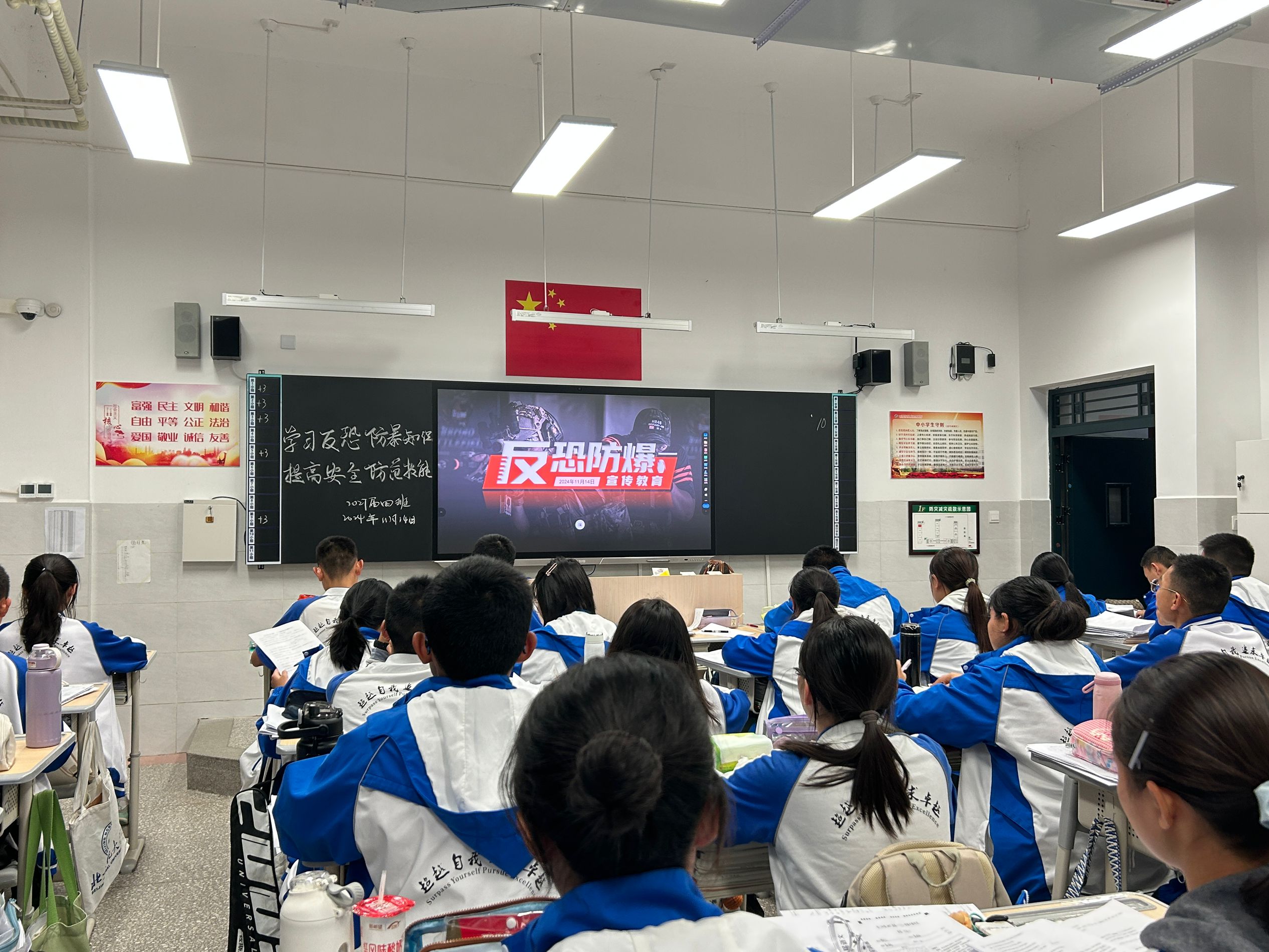11月14日,各班开展主题微班会,学习反恐防暴知识,了解安全防范的技能,组织观看了相关视频,更加直观地了解逃生细节。11月18日,学校在升旗仪式上开展专题讲座,按照所处场景的不同,教导同学们如何应急躲避突发灾祸;如何使用随身物资来降低相关事件带来的伤害等。同时,在确保自身安全的情况下应第一时间报警,以获取专业人员支援。