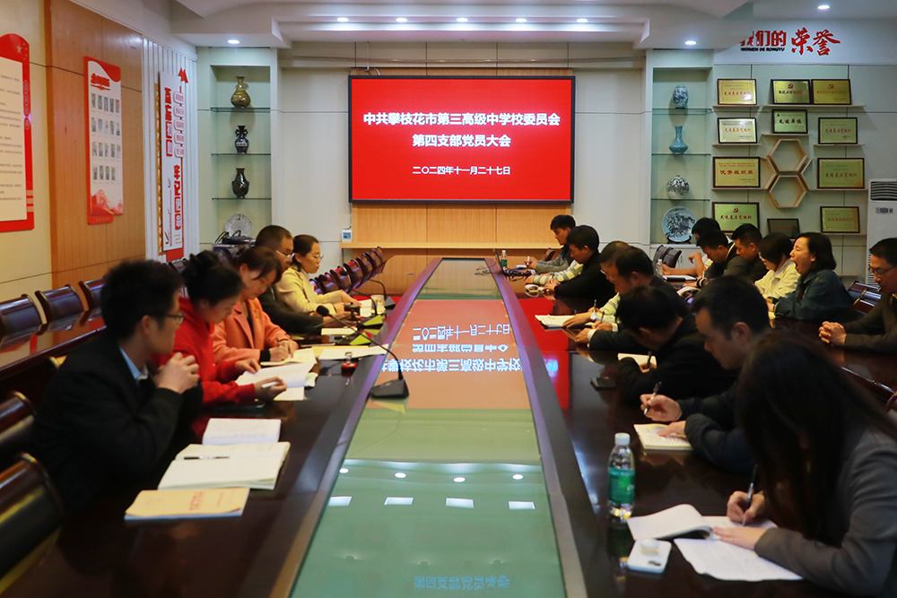 为深入学习贯彻党的二十届三中全会精神,促进广大党员干部更好地理解和落实会议精神,11月27日下午,市三中第四党支部在图书馆一楼会议室召开党员大会专题学习贯彻党的二十届三中全会精神。会议由支部书记范伟同志主持,校党委副书记何先全同志、校纪委书记韦堂萍同志以普通党员身份参会。