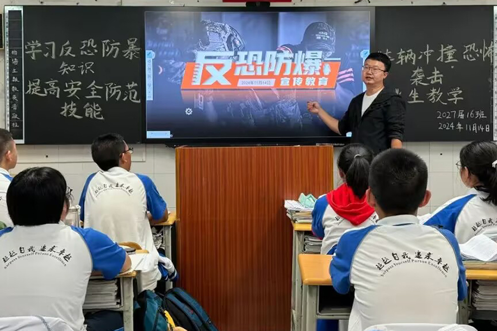 11月14日,各年级组织开展校园安全主题微班会,组织学生学习反恐防暴知识,了解安全防范的技能,提升学生应对暴力袭击事件的自救能力。