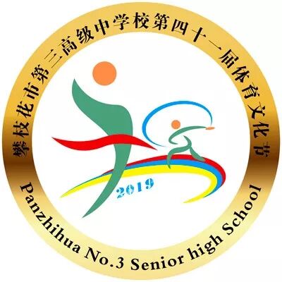 会徽简介:会徽的主体由左边正在冲线的径赛运动员和右边奋力掷出铁饼的田赛运动员构成。两人的运动轨迹巧妙地构成了70字样,寓示着今年是中华人民共和国成立70周年。他们的脚下是由红、蓝、黄三色组成的弧形跑道,寓意为三个年级的同学携手并进,冲向未来。运动员的主体为绿色,昭示三中学子健康向上的青春活力。会徽的黄色外圈既象征着三中辉煌的历史成就,同时又寓意着三中闪耀的未来。