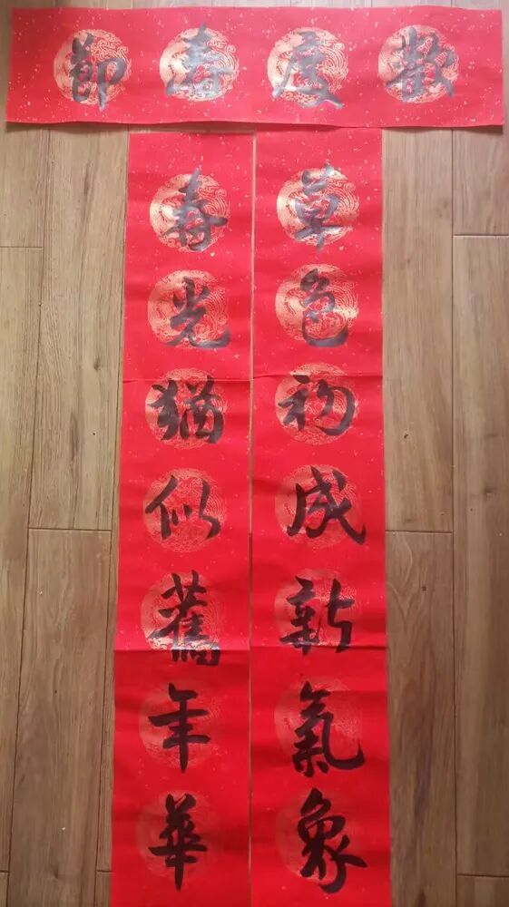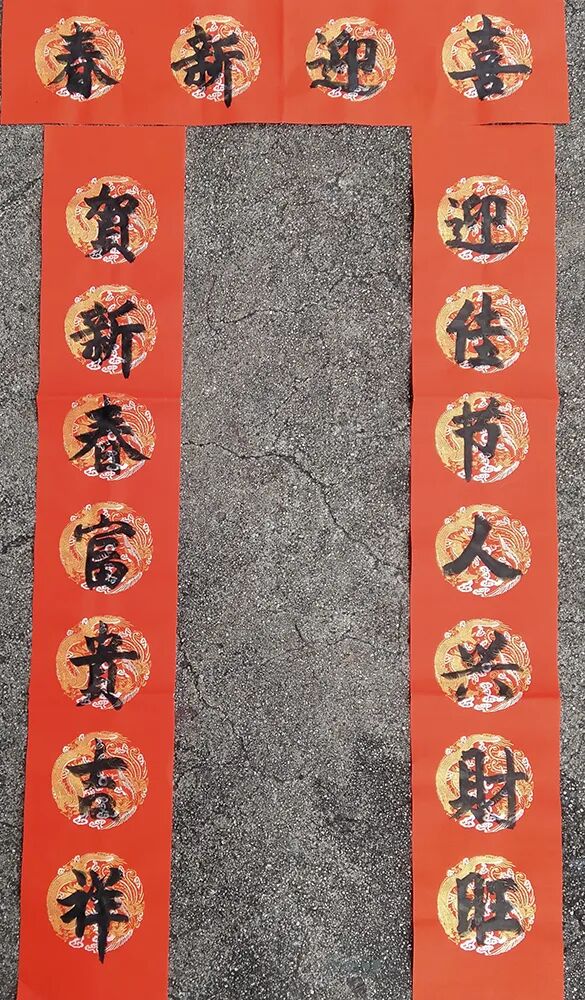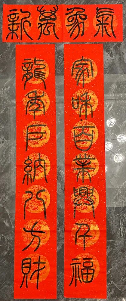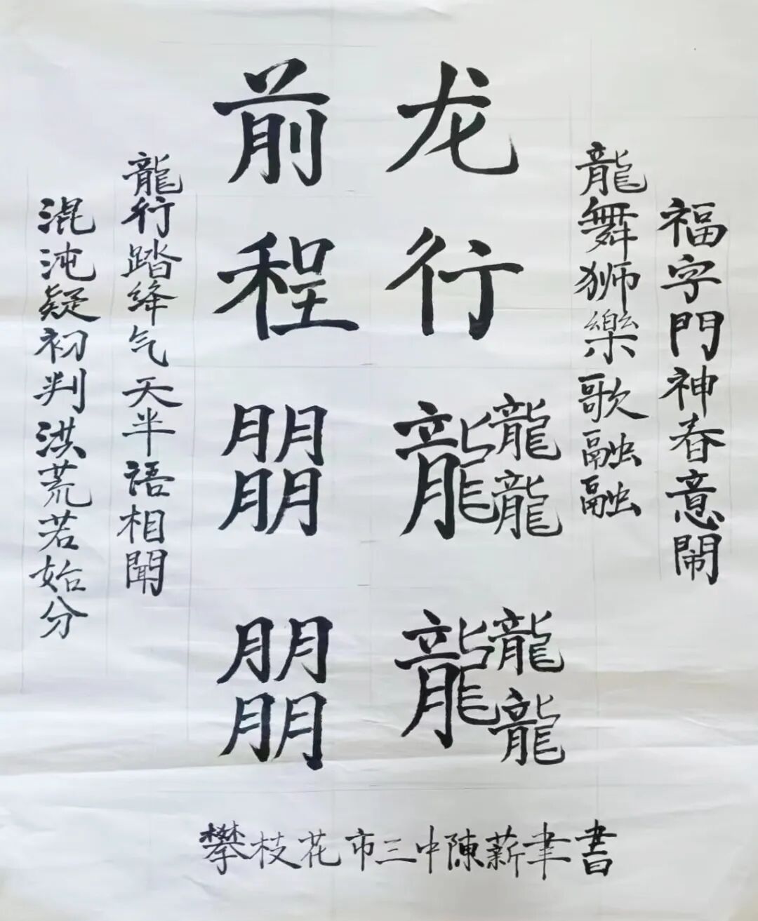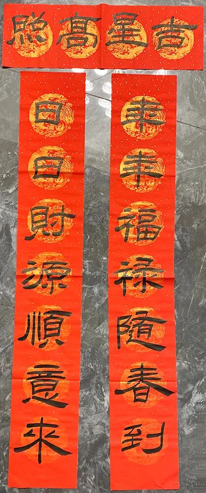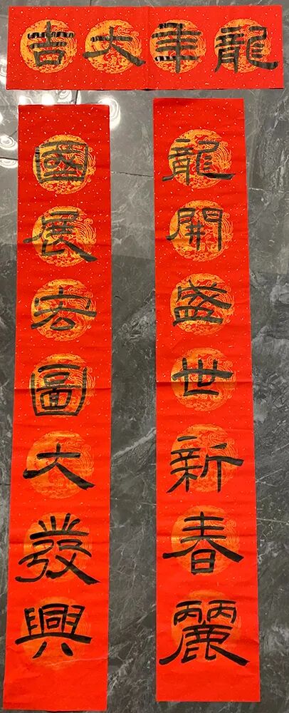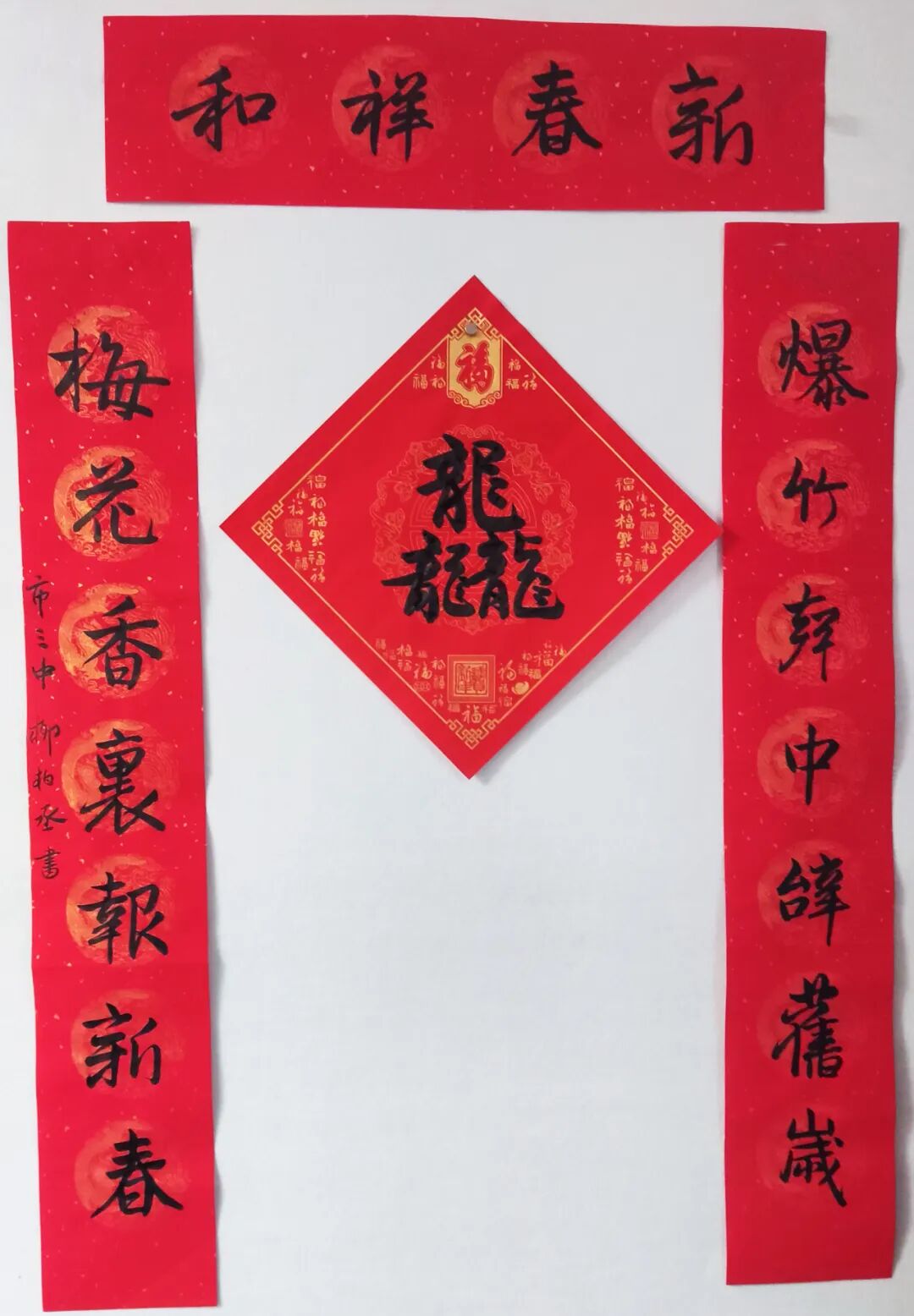 本次活动将传统节日的喜庆与书法的艺术魅力相结合,从“山清水秀风光好,人寿年丰喜事多”到“迎佳节人兴财旺,贺新春富贵吉祥”的春联,还有“事事如意——龙年万柿兴龙图”和“腊梅朵朵开图”等画作,每一幅作品都寄托着对新年的美好祝愿和对未来的憧憬。那饱蘸墨汁的支支毛笔,俊秀苍劲的行行书法,栩栩如生的幅幅画作,都展现出师生们对传统文化的热爱。