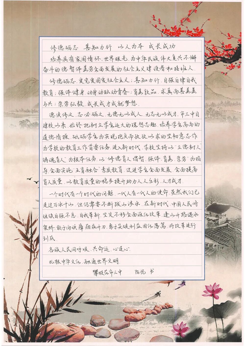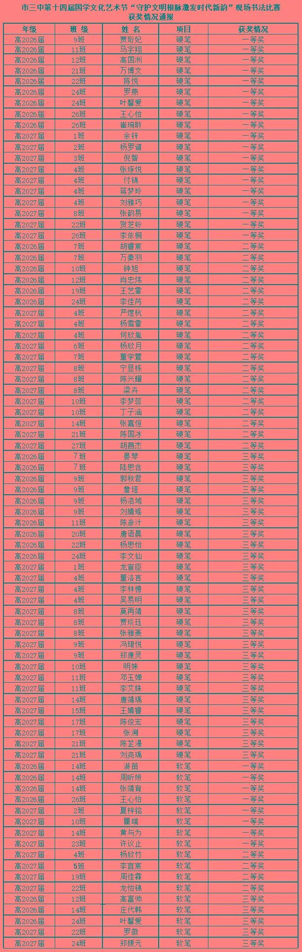 市三中第十四届国学文化艺术节“守护文明根脉激发时代新韵”现场书法比赛获奖情况通报