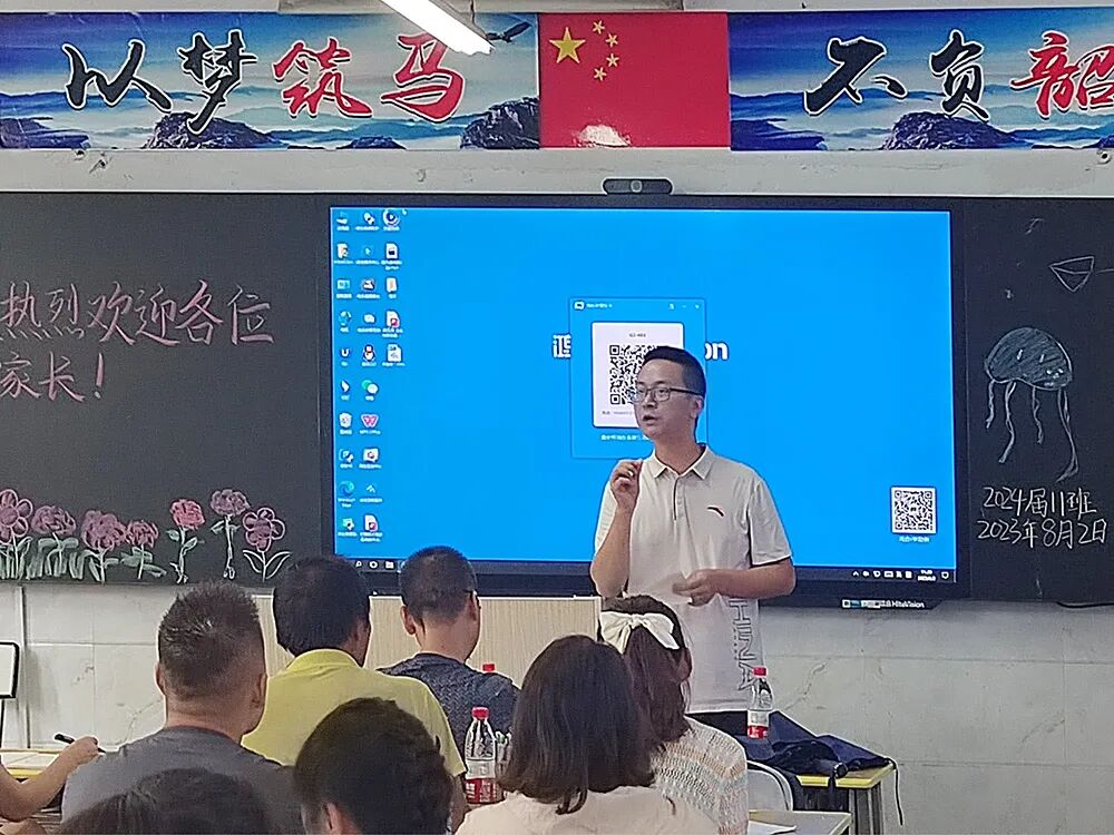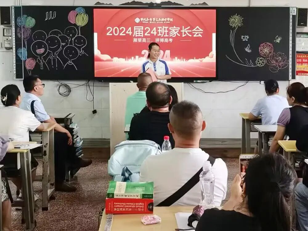年级主任贺剑知代表高2024届年级管理团队向与会家长汇报高三备考指导思想、工作目标、工作思路、对应措施、近期工作等内容,重点介绍高三备考的系列措施,并对高三家长提出了建议,希望大家“做智慧、幸福的高三家长”。
