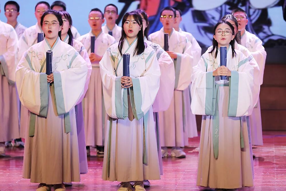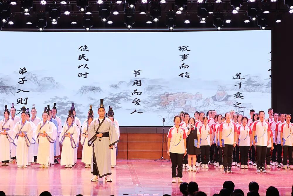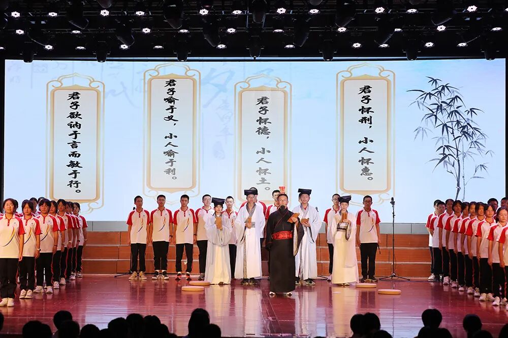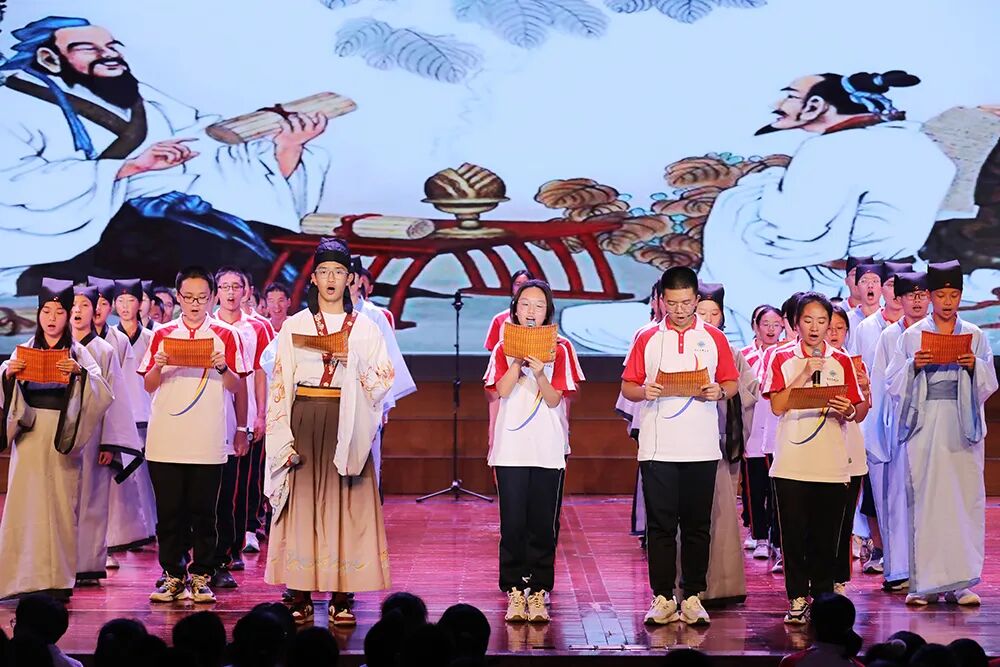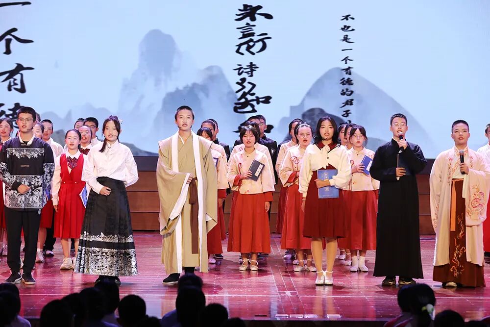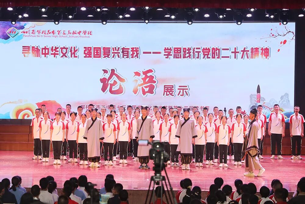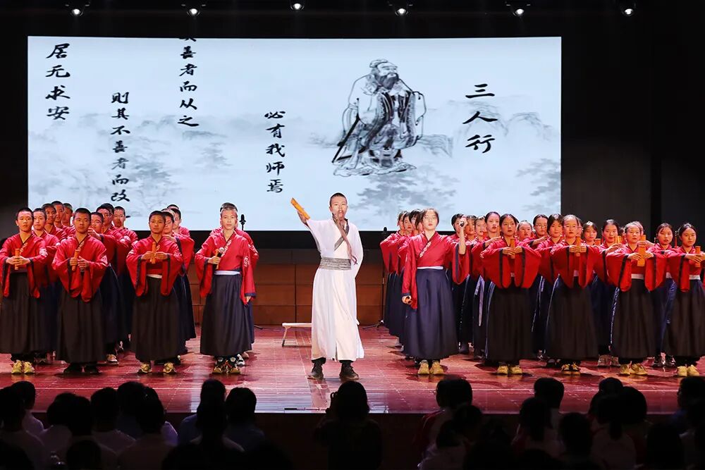 2023年10月19日,市三中(学园路校区)第十三届“国学文化艺术节”暨第十二届读书节之《论语》诵读展示活动在学校图书馆三楼演播厅隆重举行。千余名师生齐聚一堂,共襄文化盛举。