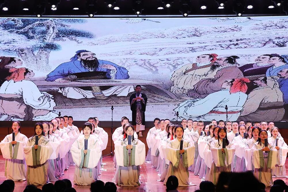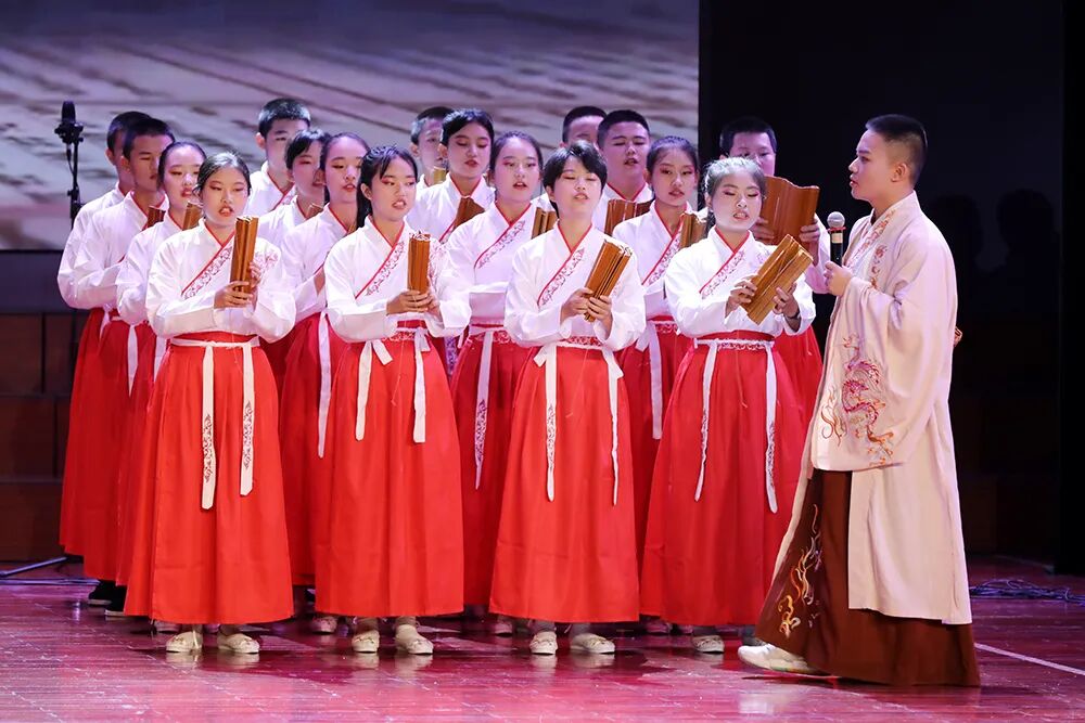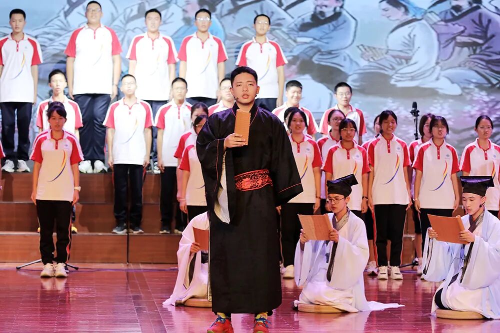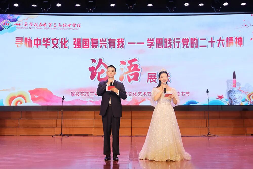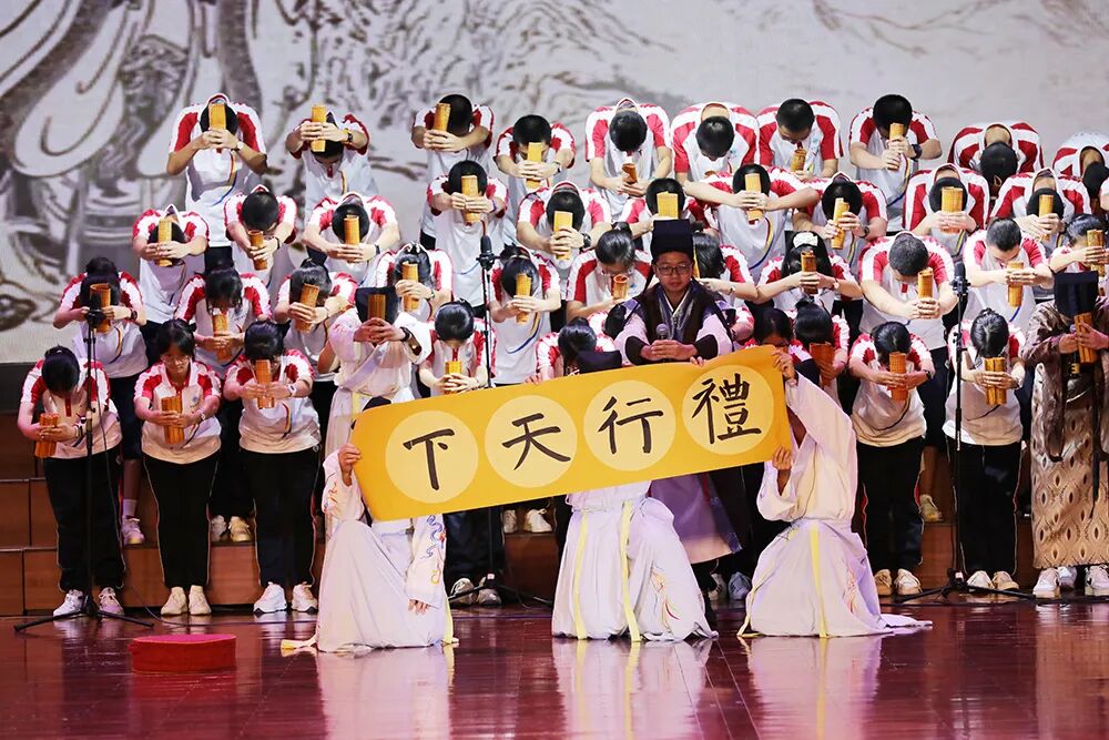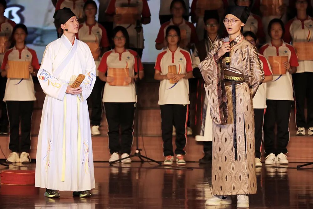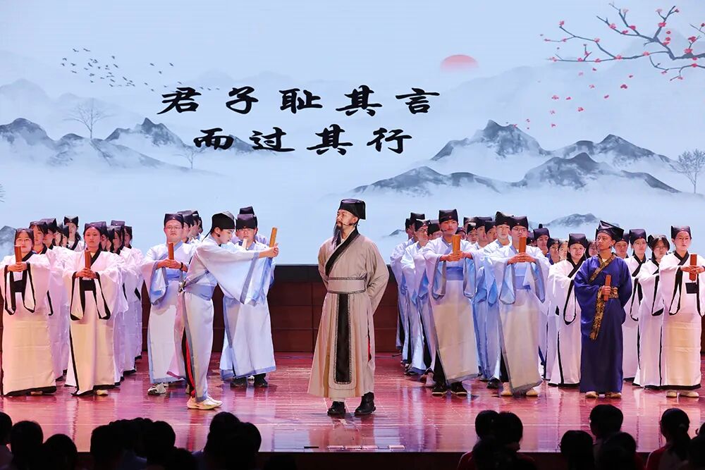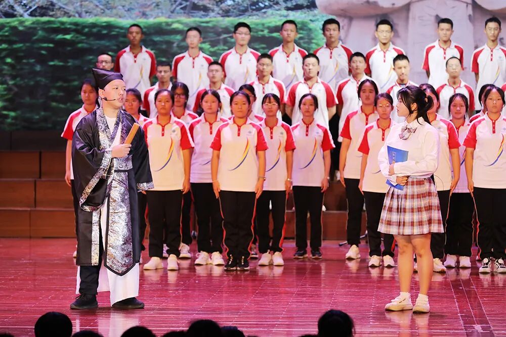 2023年10月19日,市三中(学园路校区)第十三届“国学文化艺术节”暨第十二届读书节之《论语》诵读展示活动在学校图书馆三楼演播厅隆重举行。千余名师生齐聚一堂,共襄文化盛举。