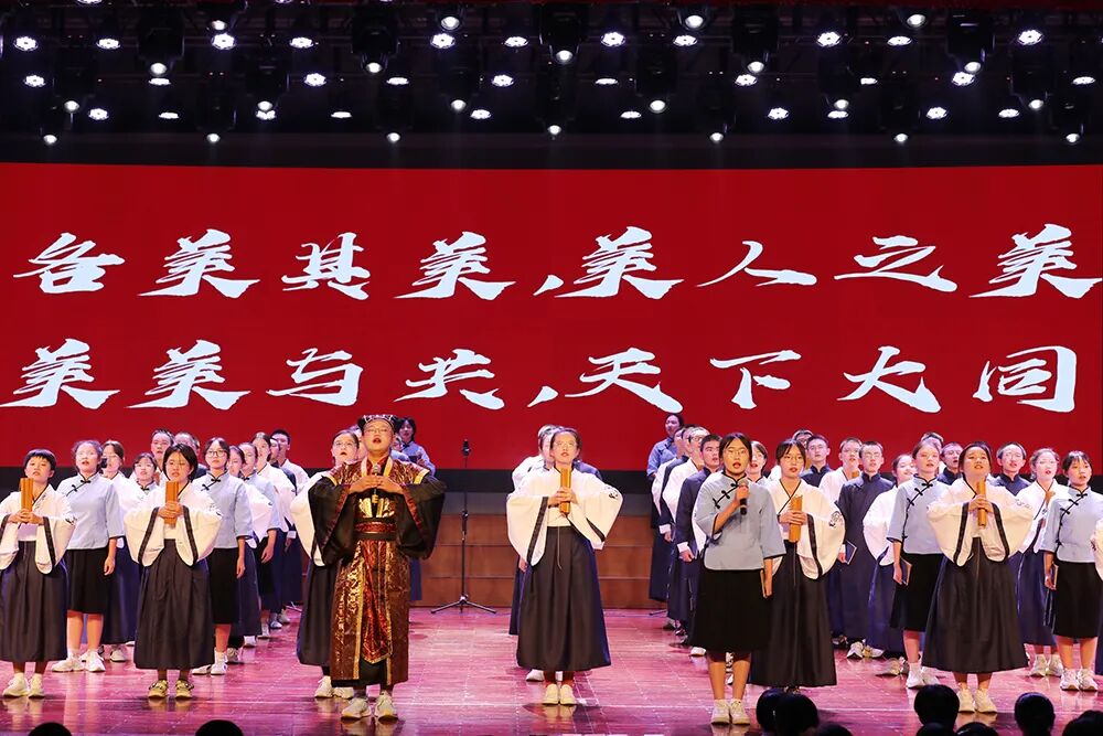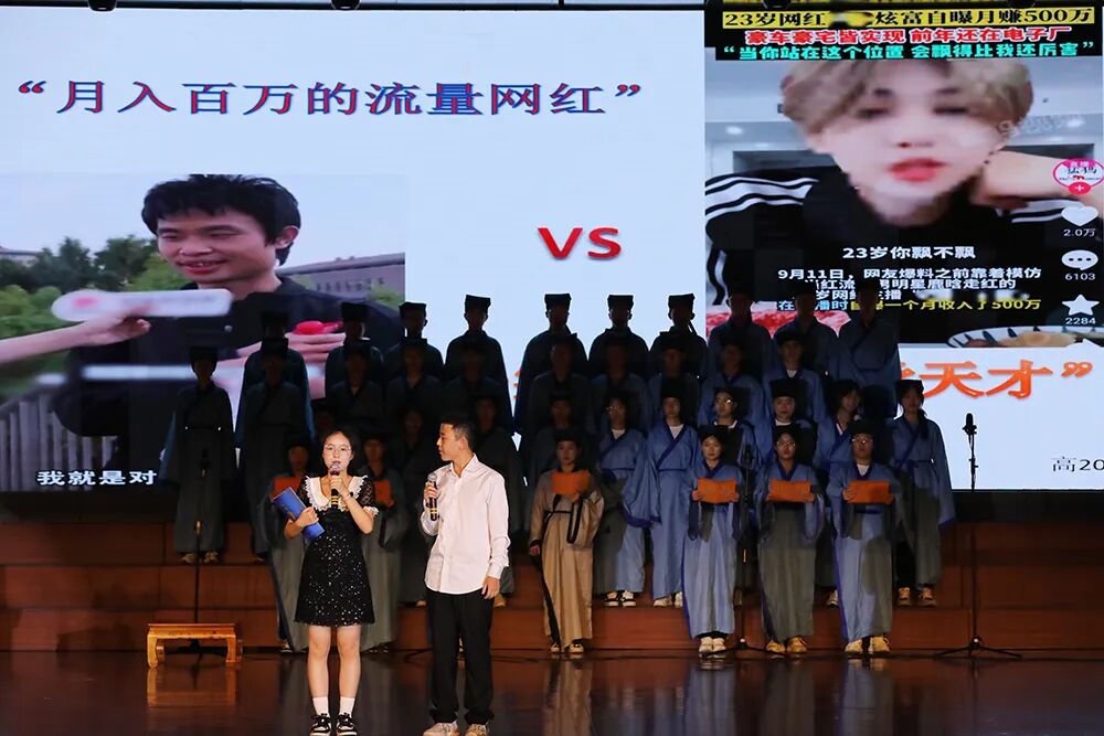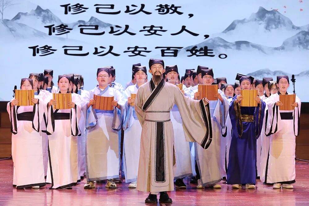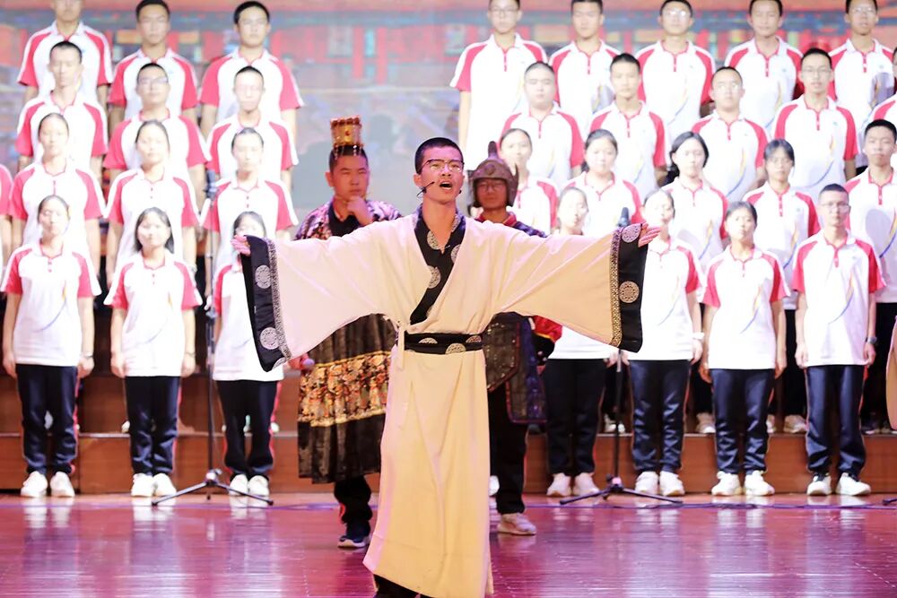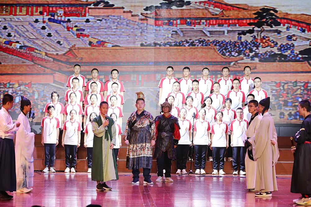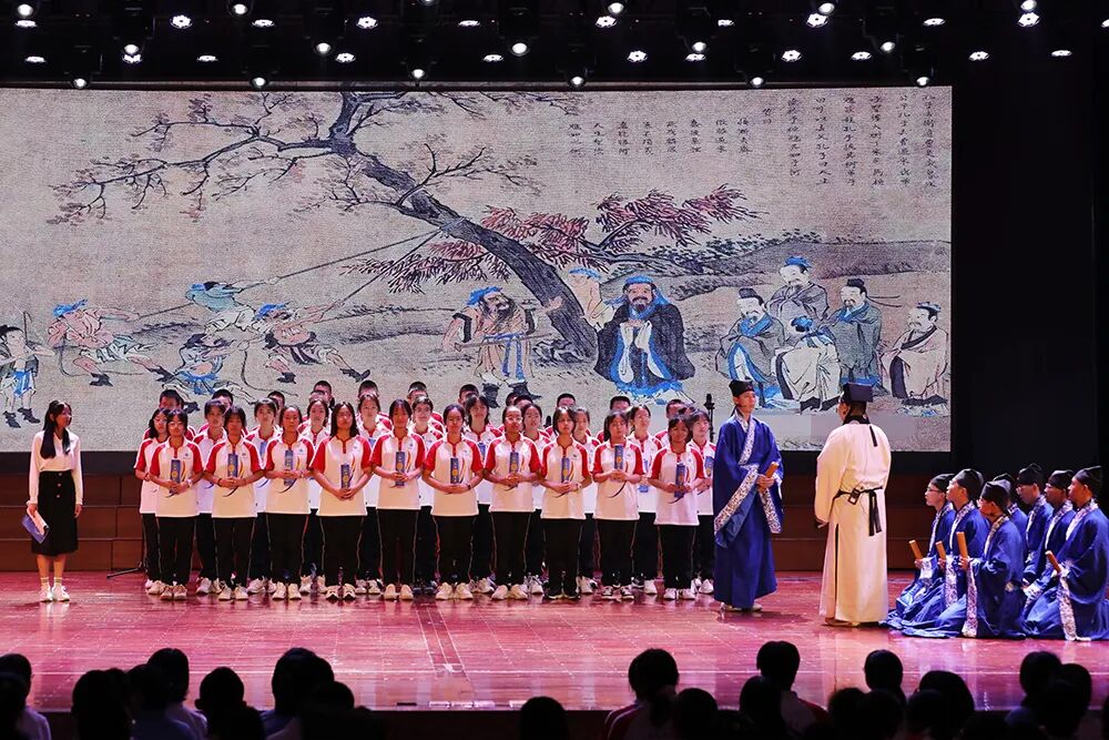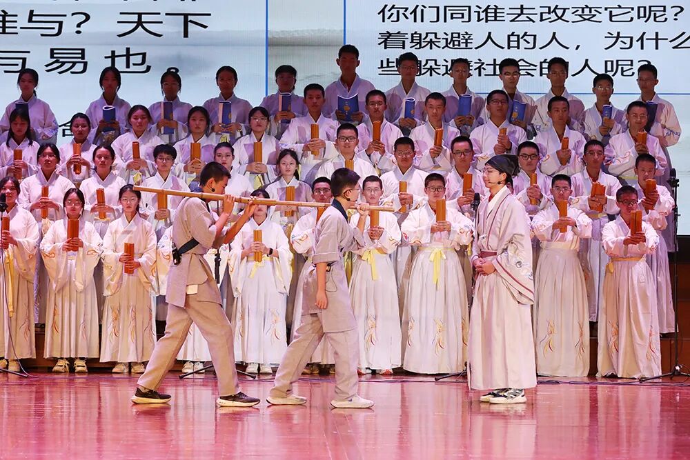 2023年10月19日,市三中(学园路校区)第十三届“国学文化艺术节”暨第十二届读书节之《论语》诵读展示活动在学校图书馆三楼演播厅隆重举行。千余名师生齐聚一堂,共襄文化盛举。