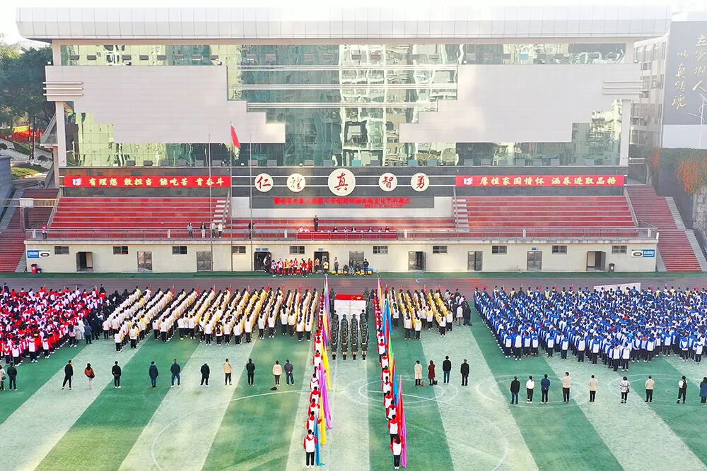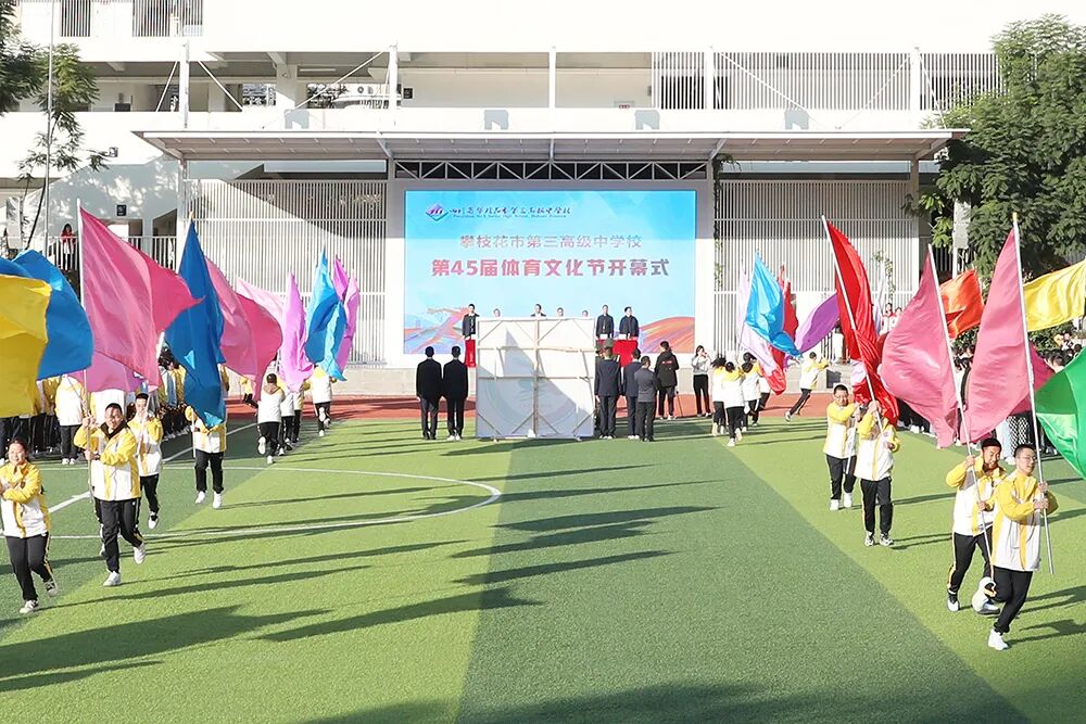 上午8时,开幕式正式开始、仪仗队携国旗、校旗、会徽、标语牌迎着朝阳,迈着铿锵有力的步伐向主席台走来。伴随着响亮的口号声,彩旗方阵、教师方阵、学生方阵,步伐整齐、有序入场;钒钛校区2025届、2026届的同学们更是用精彩纷呈的节目展示了他们朝气蓬勃、精神抖擞、奋发向上、团结拼搏的精神风貌。