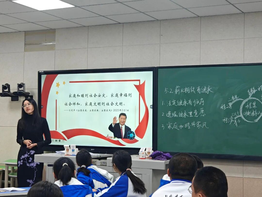 活动伊始,李楚芸老师带来了一堂别开生面的公开课。她以《法律与生活》“薪火相传有继承”为主题,引导学生结合《民法典》条文分析案件,在角色互动中厘清法定继承顺序、遗嘱效力等法律知识。这种沉浸式教学方式不仅激发了学生的学习兴趣,也让法律知识更加生动易懂。