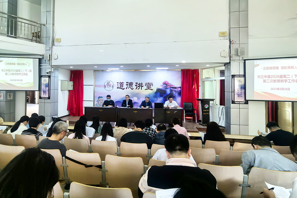 为适应教育改革,把握新高考方向,更好地培养学生核心素养,市三中2026届于3月26日在高三园学术厅召开高二(下)期第二次教育教学工作会。会议由校党委委员、副校长税荣昌主持,校党委副书记、校长代座城出席会议并讲话,年级管理团队、高2026届全体教师参会。