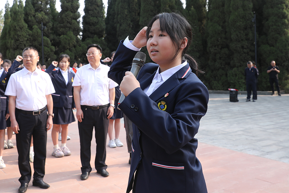 高2027届团总支副书记马兴潼带领大家庄严宣誓,表达了为强国复兴贡献青春力量的坚定信念和决心。