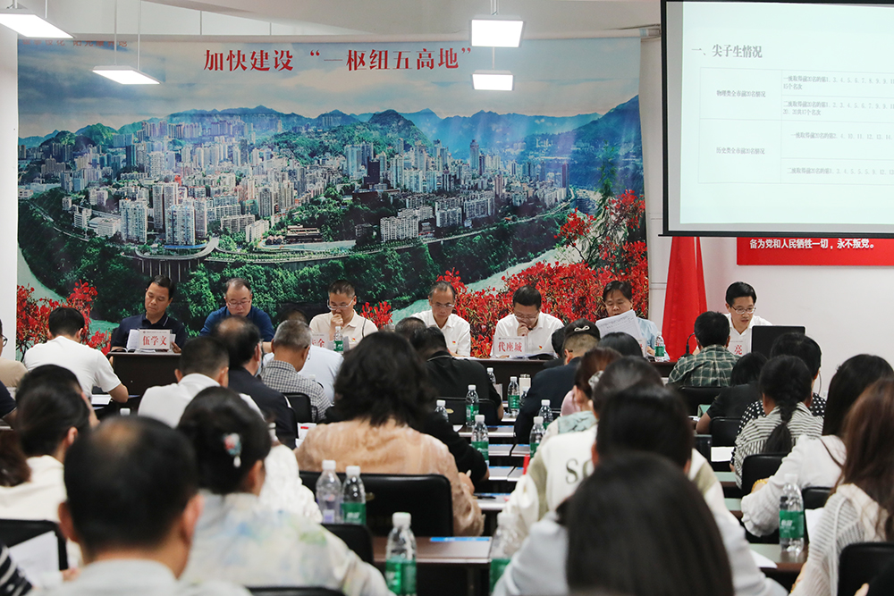 会议最后,陈柏羽书记围绕着“安能思危”“进能思变”“成必思远”三个方面,对高三后期教育教学备考工作作出要求。成绩属于过去,奋斗赢得未来,需时刻关注学生状态,留意高考政策的细微变化,全体教师都要关注高校考试招生的国家顶层设计;2025届要致力成为“引领示范”品牌担当者、“新高考综合改革”领跑者。教学方法要紧跟时代与学生需求,摒弃僵化模式,运用大数据分析找准学生的薄弱点,精准施教。高考不是终点,要为学生的未来发展做好指引,引导学生树立正确的价值观与学习观,在培养应考能力的同时,更要助力他们成为终身学习者。