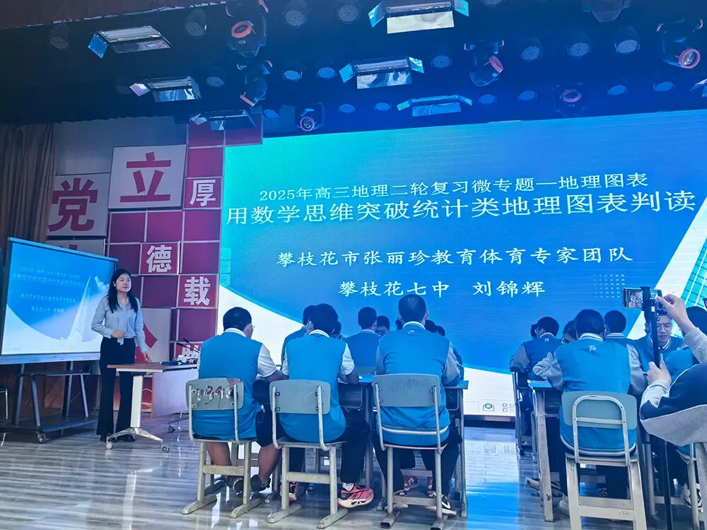 攀枝花市张丽珍教育体育专家团队工作室成员,市七中刘锦辉老师通过《用数学思维突破地理统计图表判读》专题复习课,开创性地将数学建模应用于地理图表分析,为突破教学难点提供新思路。