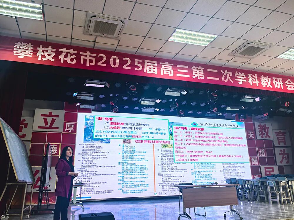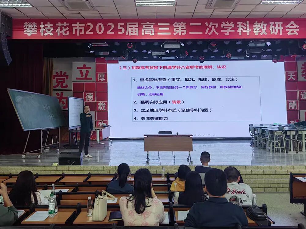 4月3日,为精准把握新高考改革方向,全面提升高三地理备考质量,攀枝花市张丽珍教育体育专家团队工作室、攀枝花市桑梓伦名师工作室领衔前往盐边县中学校开展攀枝花市2025届高三地理学科第二次联合教研活动。两个工作室全体成员、学员,攀枝花市全体高三地理教师参加本次活动。