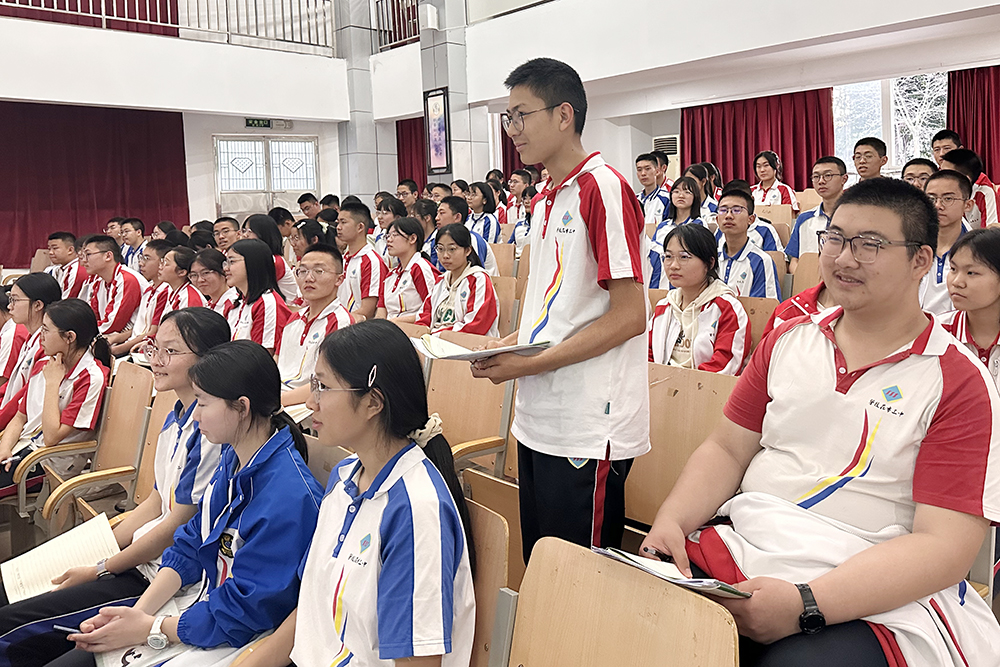4月14日,晨光微启时,学校钒钛校区的主席台上回荡着高2027届1班黄清蕊的清越嗓音:“让我们用数字素养编织防线,以文化自信晕染底色,凭科技创新题写未来!”铿锵字句惊起枝头早莺,与少年们炽热的心跳共振。