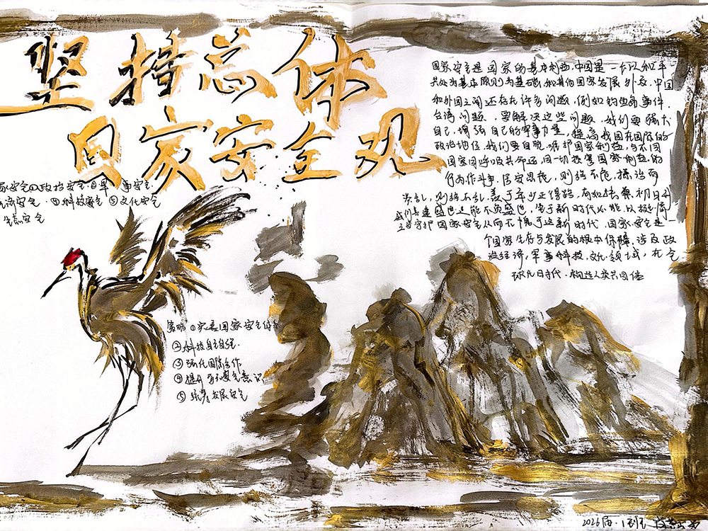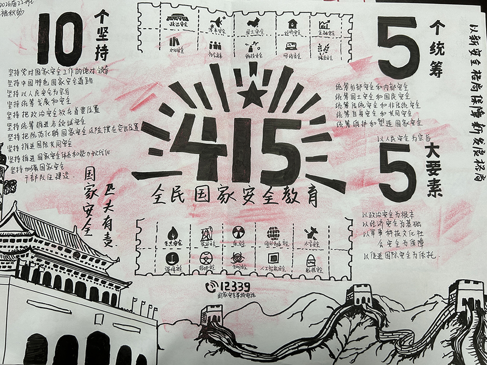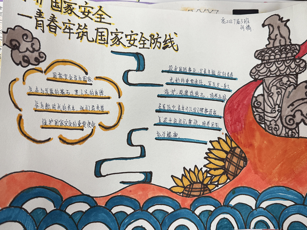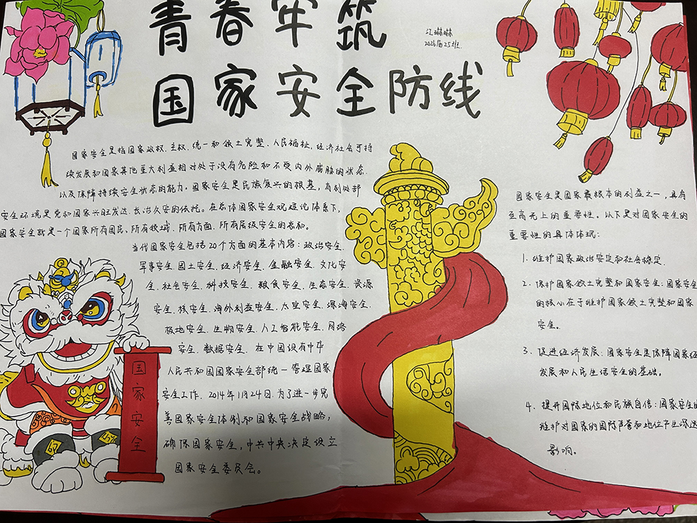 一幅幅手抄报里藏着少年心事:有的用代码绘制隐形盾牌,有的以水墨点染文化疆界,无人机与汉服在画纸上奇妙相遇——这正是Z世代理解的国安图景。
