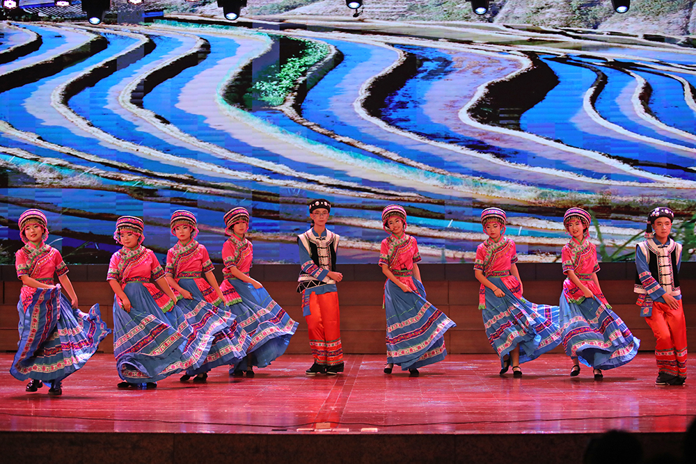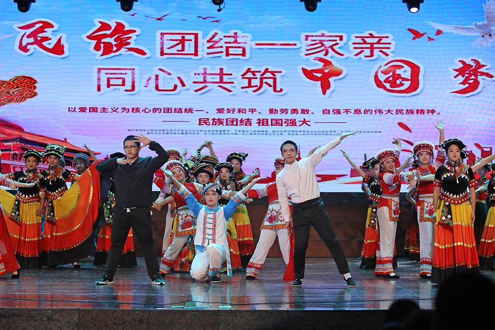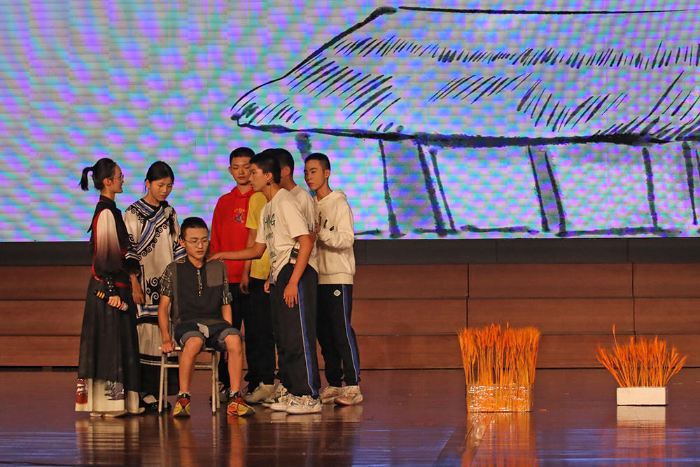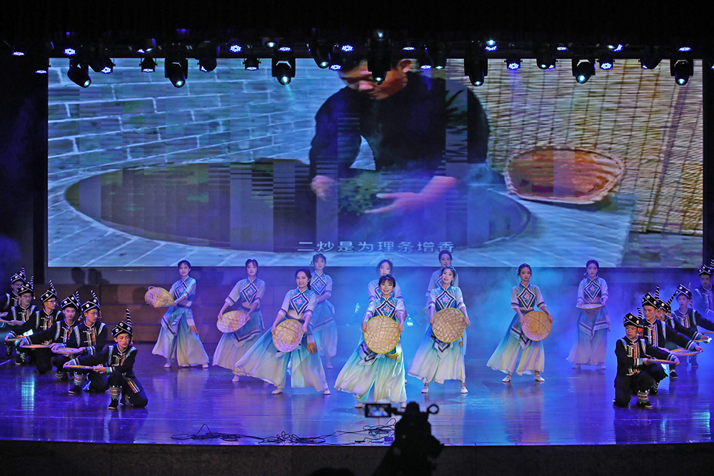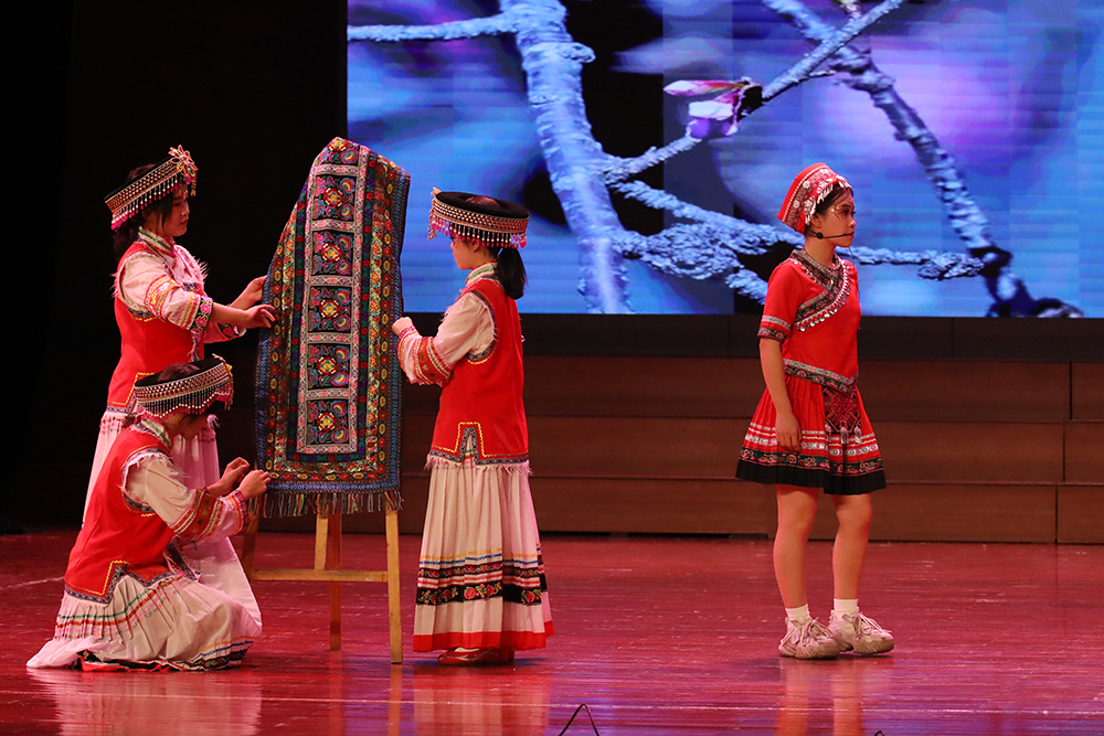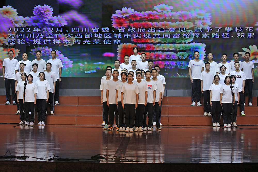 诗朗诵《颂花城》以铿锵诗行和三中学子的青春活力勾勒攀枝花从三线热土到阳光花城的蝶变历程;傈僳族舞蹈《一叶同心,傈僳茶香》中,舞者们身着绿色刺绣长裙,借灵动舞步将傈僳族以茶会友的民族风情铺展成一幅绚丽多彩的画卷;《诗意青春》歌舞翩跹,将“恰同学少年”的书生意气化作流动的诗行;《狮缘・傩影》舞狮腾跃、龙影翻飞,重现川滇交界的民俗瑰宝;《民族舞韵,同心共筑》里,彝族、傈僳族等多个少数民族的精美服饰同台展出,彩带飞扬间绘就中华民族共同体的绚丽图景。