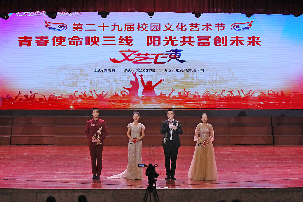 四月芳菲竞放,春晖漫洒学园。为进一步推动校园文化建设,传递三线精神薪火,共绘共富新篇,4月17日晚,买大小平台第29届校园文化艺术节高2027届(学园路校区)文艺汇演在学校演播厅隆重举行。学校党委班子成员、家长代表、2027届(学园路校区)全体师生共享此次文化艺术盛宴。